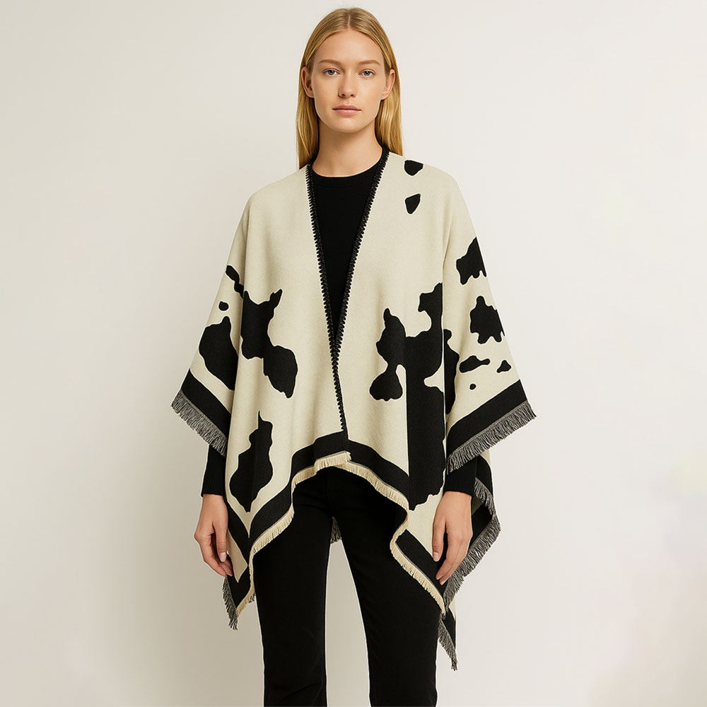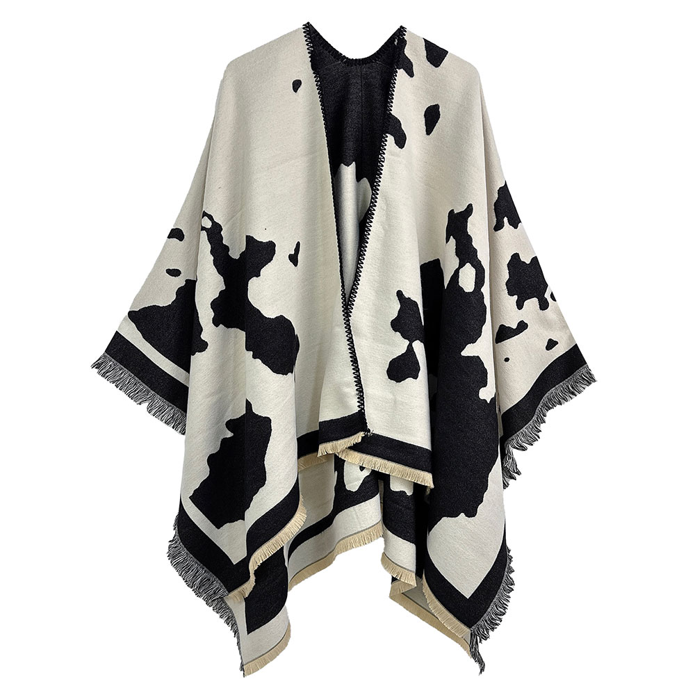 Details • Size : 51.2" X 59" • Material : 100% Polyester • Wrap yourself in contemporary style with this abstract pattern poncho featuring soft fringed edges and a relaxed draped silhouette. Perfect for layering over casual or dressy outfits, it combines warmth and sophistication for a chic, polished look all season long.