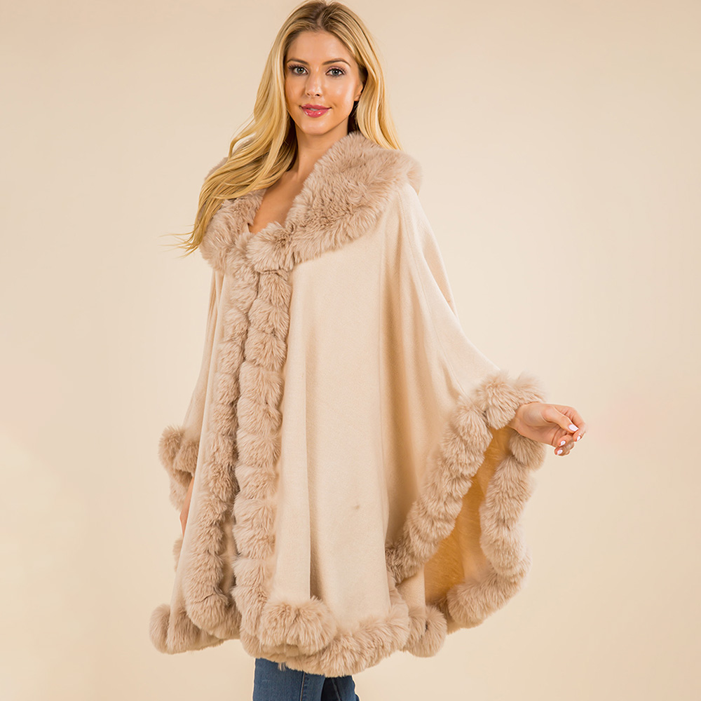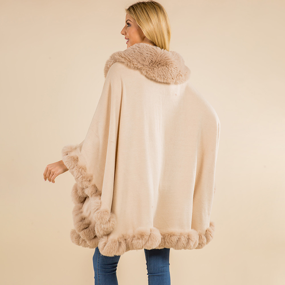 Faux Fur Trim Flowing Shawl Cape Poncho Faux Fur Trim Flowing Shawl Cape Poncho Faux Fur Trim Flowing Shawl Cape Poncho