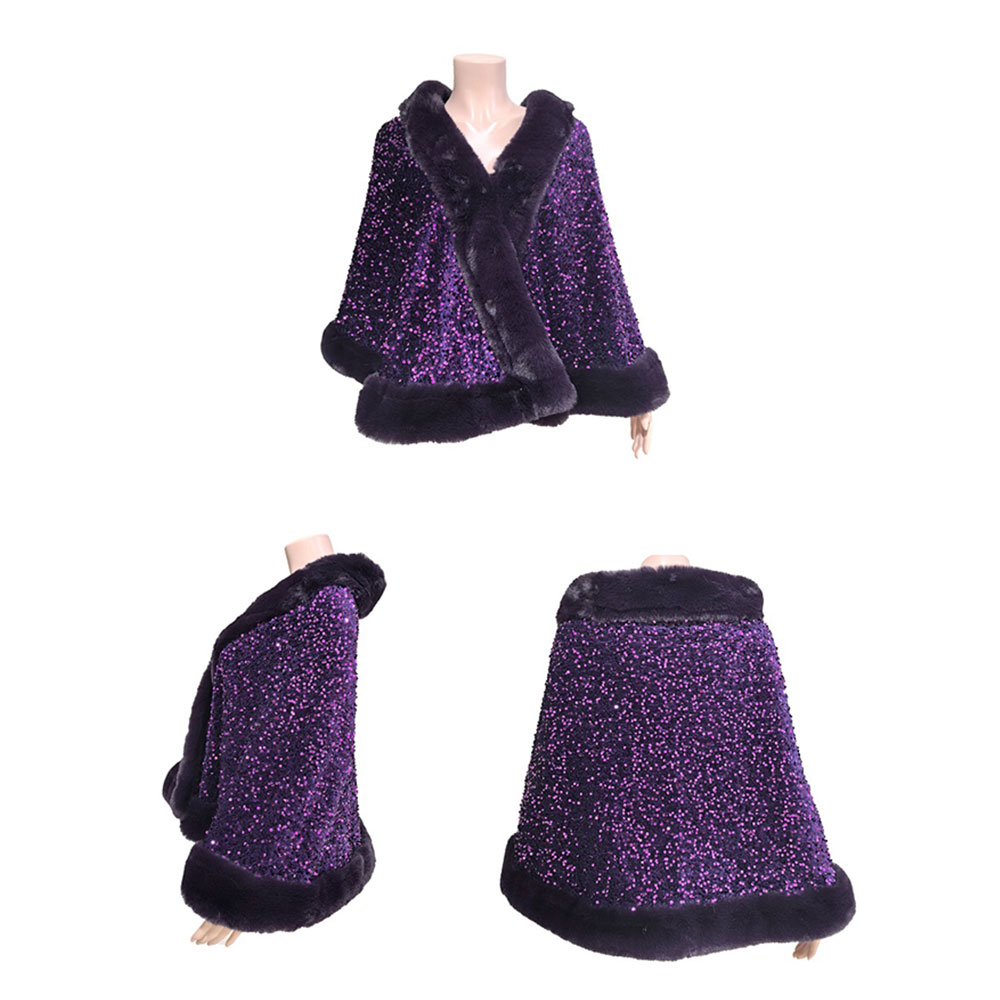 Details • Size : One Size • Material : 100% Polyester • Chic shawl-style coat featuring a shimmering sequin body and plush trim for an elegant, high-impact look. Perfect for winter events, evening outings, photoshoots or adding glamorous warmth to special occasion outfits with its sophisticated, luxurious silhouette.