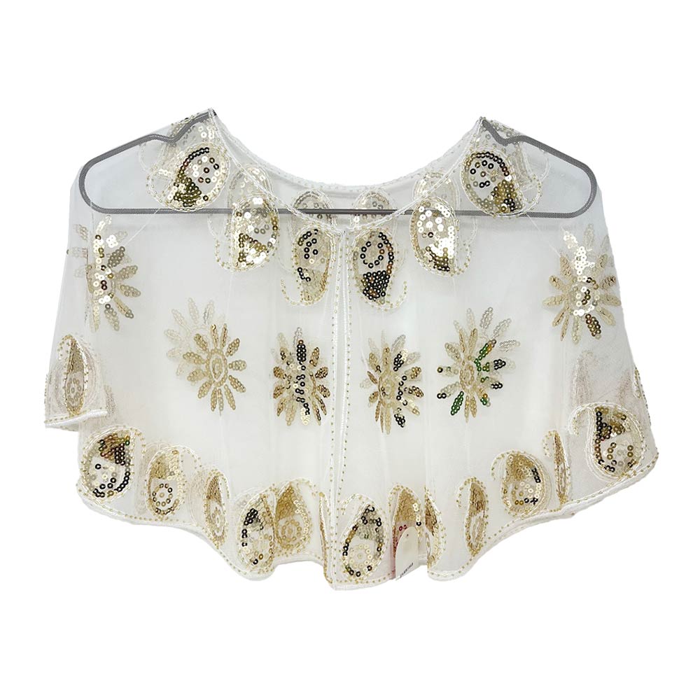 Floral Sequin Embellished Sheer Cape Shawl Top Floral Sequin Embellished Sheer Cape Shawl Top