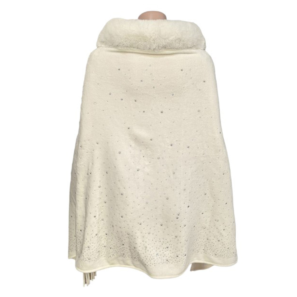 Rhinestone Embellished Fringe Faux Fur Poncho Wrap Rhinestone Embellished Fringe Faux Fur Poncho Wrap Rhinestone Embellished Fringe Faux Fur Poncho Wrap