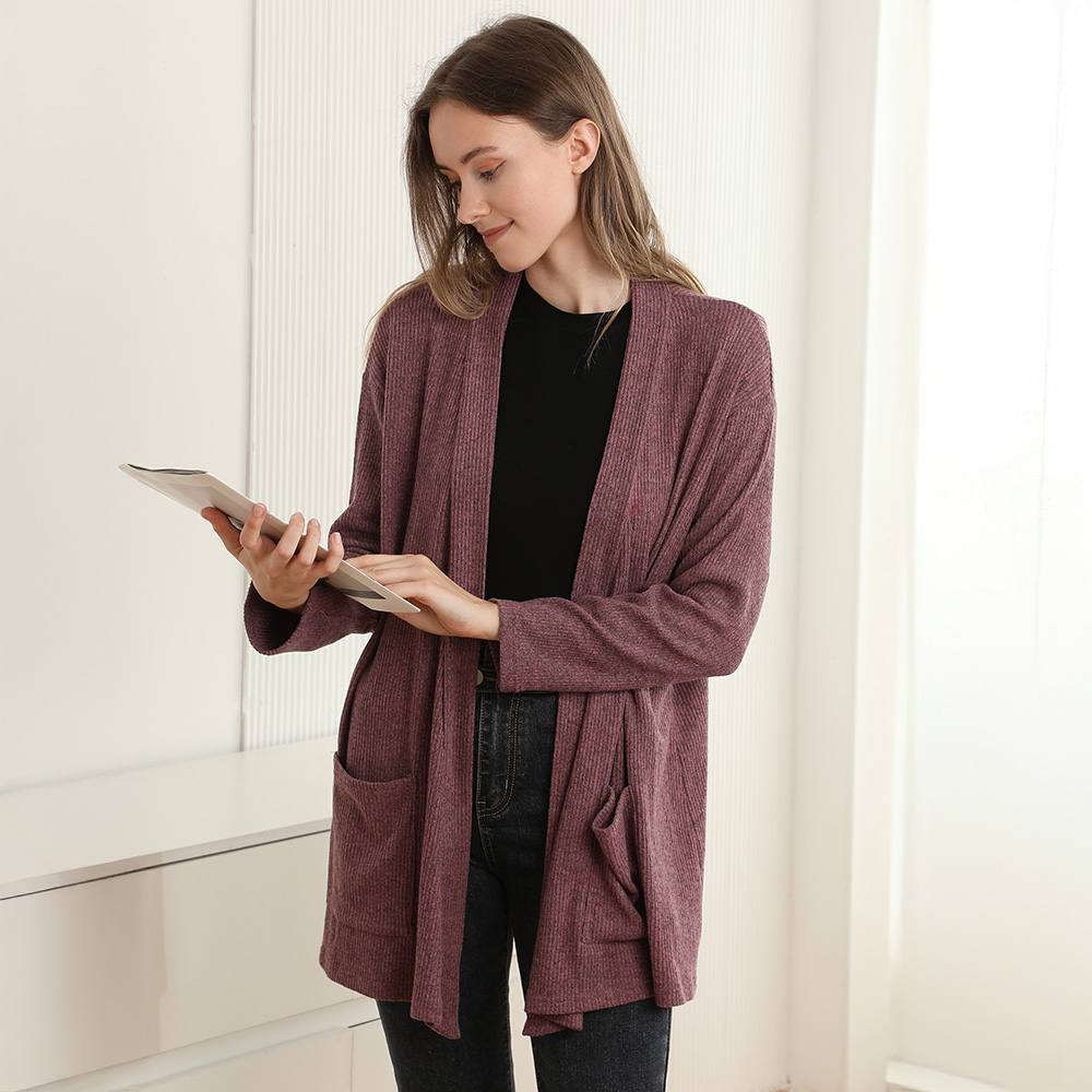 Solid Color Knit Ribbed Open Front Cardigan with Pockets