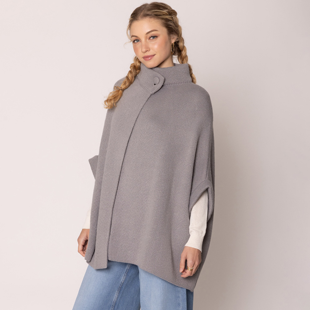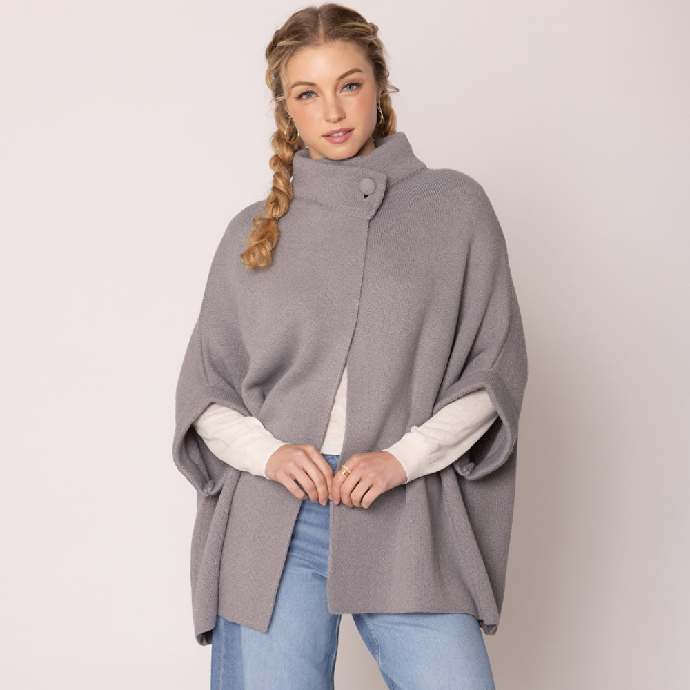 • Elevate your cold-weather style with this chic button-front cape. Designed with a high collar and relaxed drape, it layers effortlessly over any outfit, offering a polished look for work, travel, or casual wear.