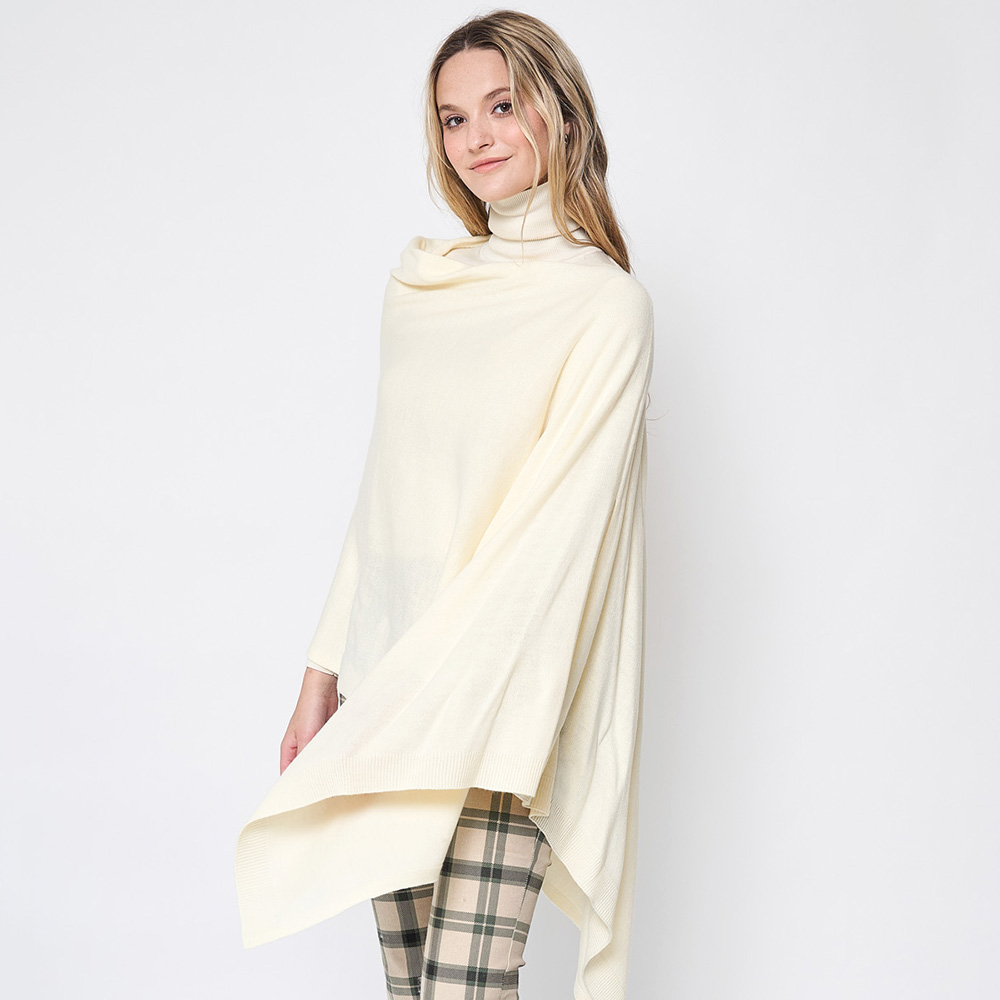 • Elevate your style with this classic asymmetrical poncho, designed for effortless layering. Its versatile drape and elegant silhouette make it the perfect wrap for both casual outings and refined occasions, offering timeless charm and cozy sophistication.