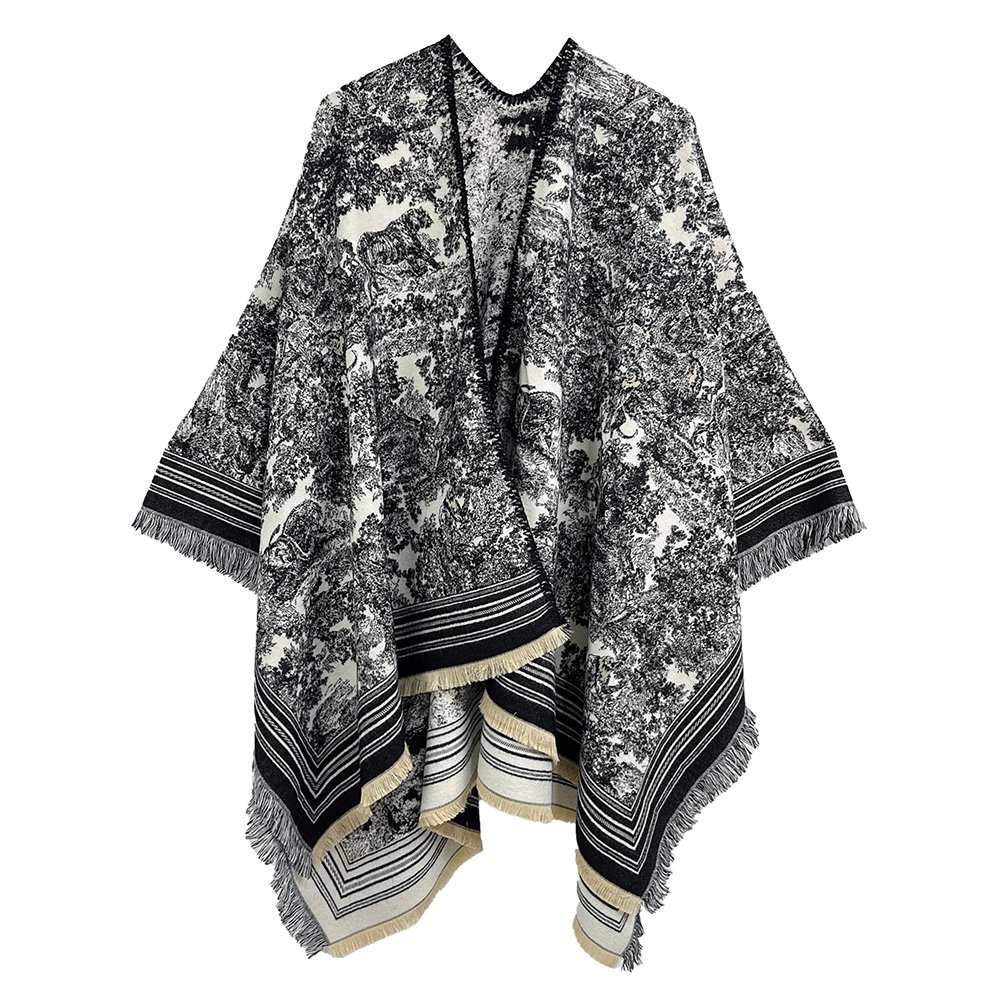 Textured Jacquard Pattern Print Ruana Poncho Textured Jacquard Pattern Print Ruana Poncho Textured Jacquard Pattern Print Ruana Poncho
