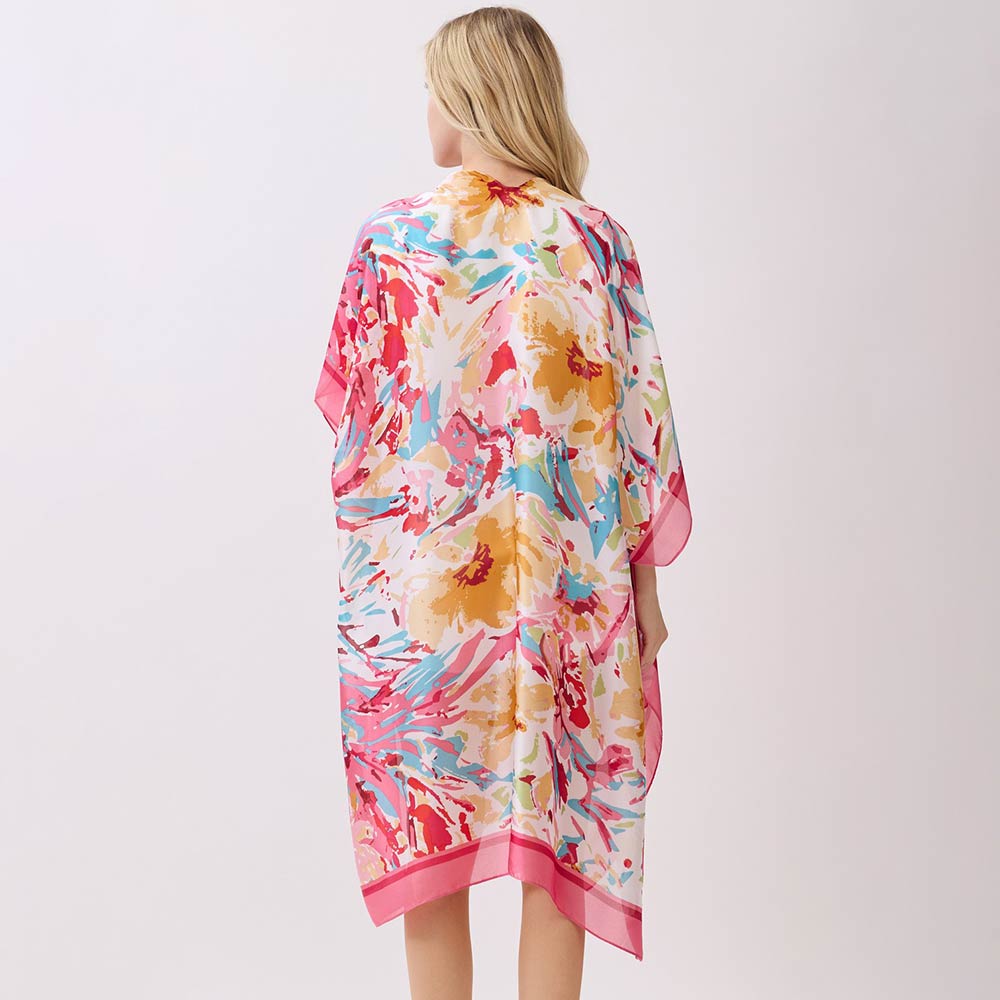 Abstract Floral Print Silky Feel Kimono Poncho Abstract Floral Print Silky Feel Kimono Poncho Abstract Floral Print Silky Feel Kimono Poncho