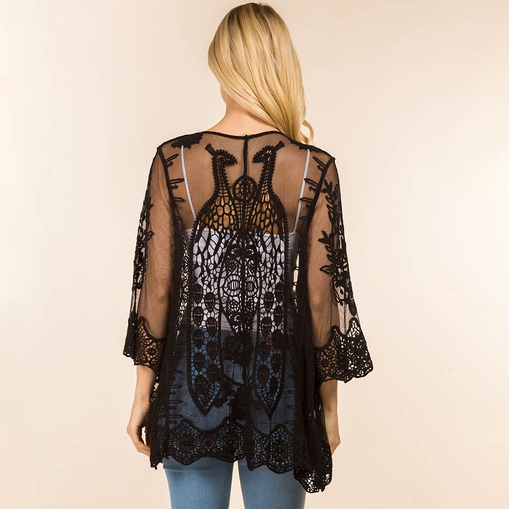 • Elegant open front kimono cardigan designed with intricate floral lace detailing for effortless layering. Perfect for casual outfits or elevated looks, it adds soft coverage, movement, and a flattering silhouette for everyday wear, travel, or special occasions.