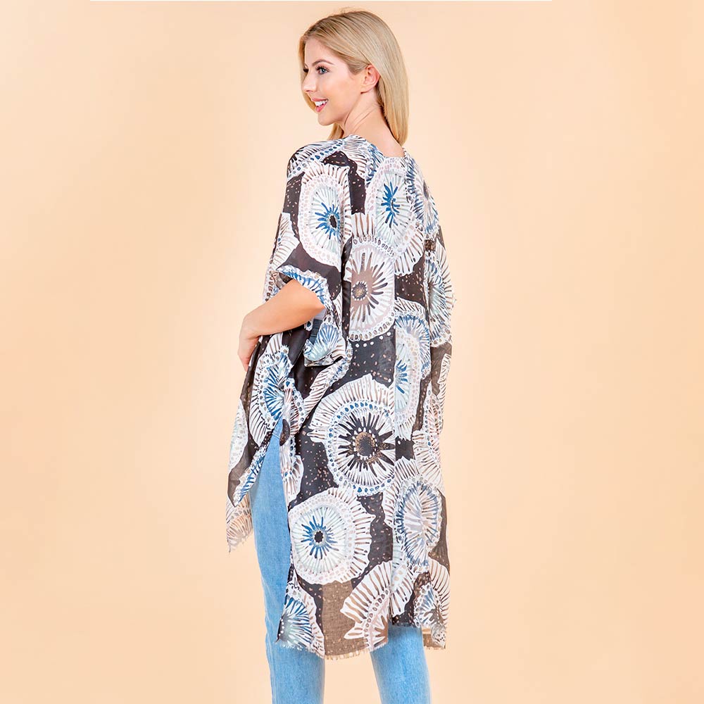 Details • Size : One Size • Material : 100% Polyester • Relaxed open front kimono wrap designed with an eye catching printed pattern and flowy silhouette. Easy to layer over tanks, tees, or dresses, it adds light coverage, movement, and a polished touch to everyday outfits, travel looks, or casual occasions.