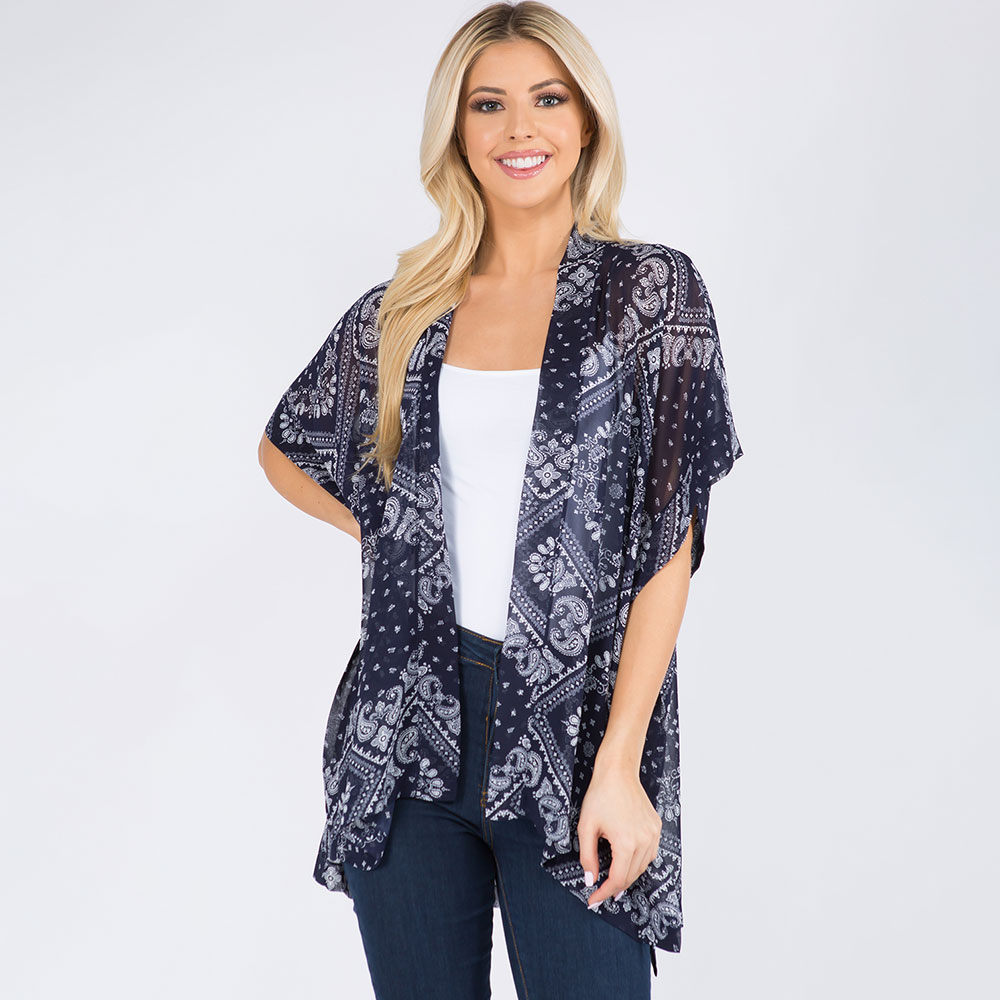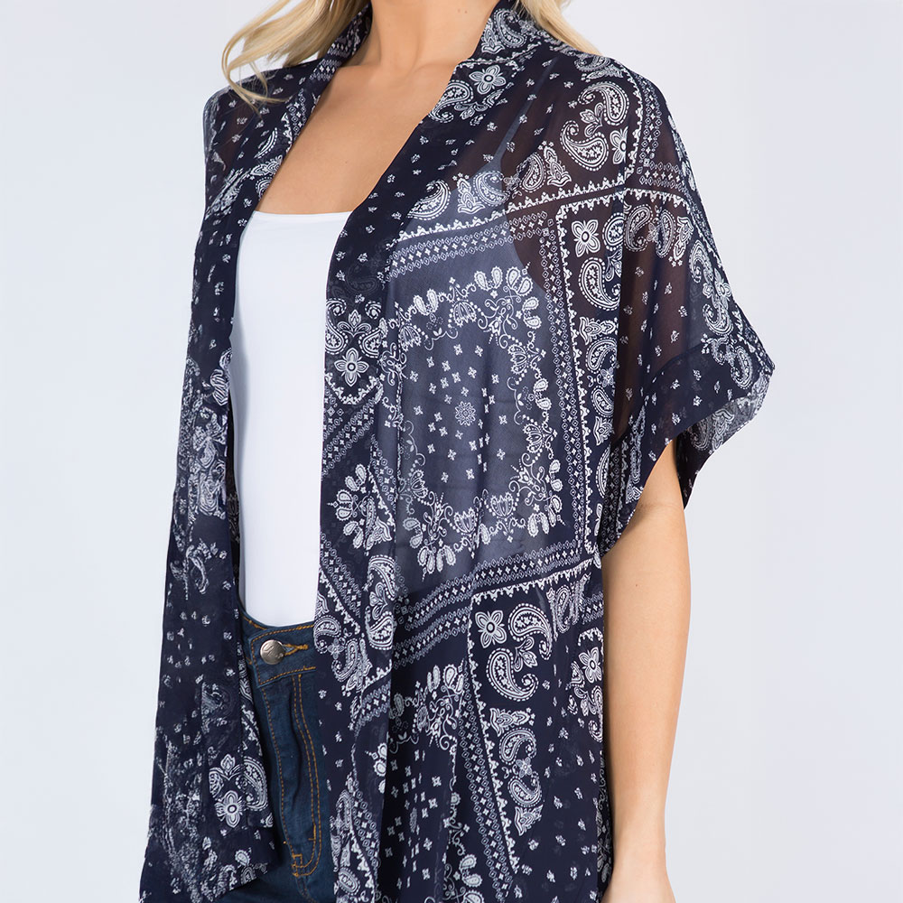 Details • Size : One Size • Material : 100% Polyester • Add a boho-chic flair with this paisley kimono cardigan. Featuring a lightweight, flowy fit and elegant paisley print, it's perfect for layering over casual outfits or beachwear. Stylish comfort for every season.