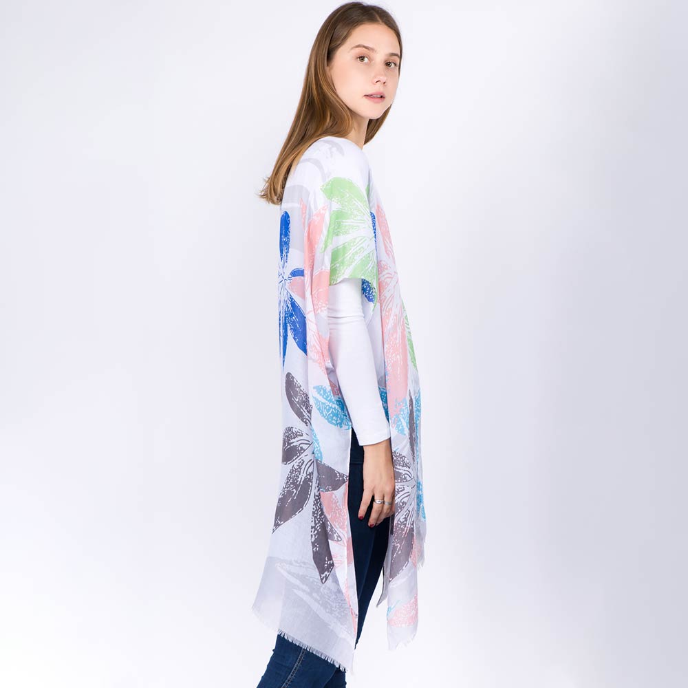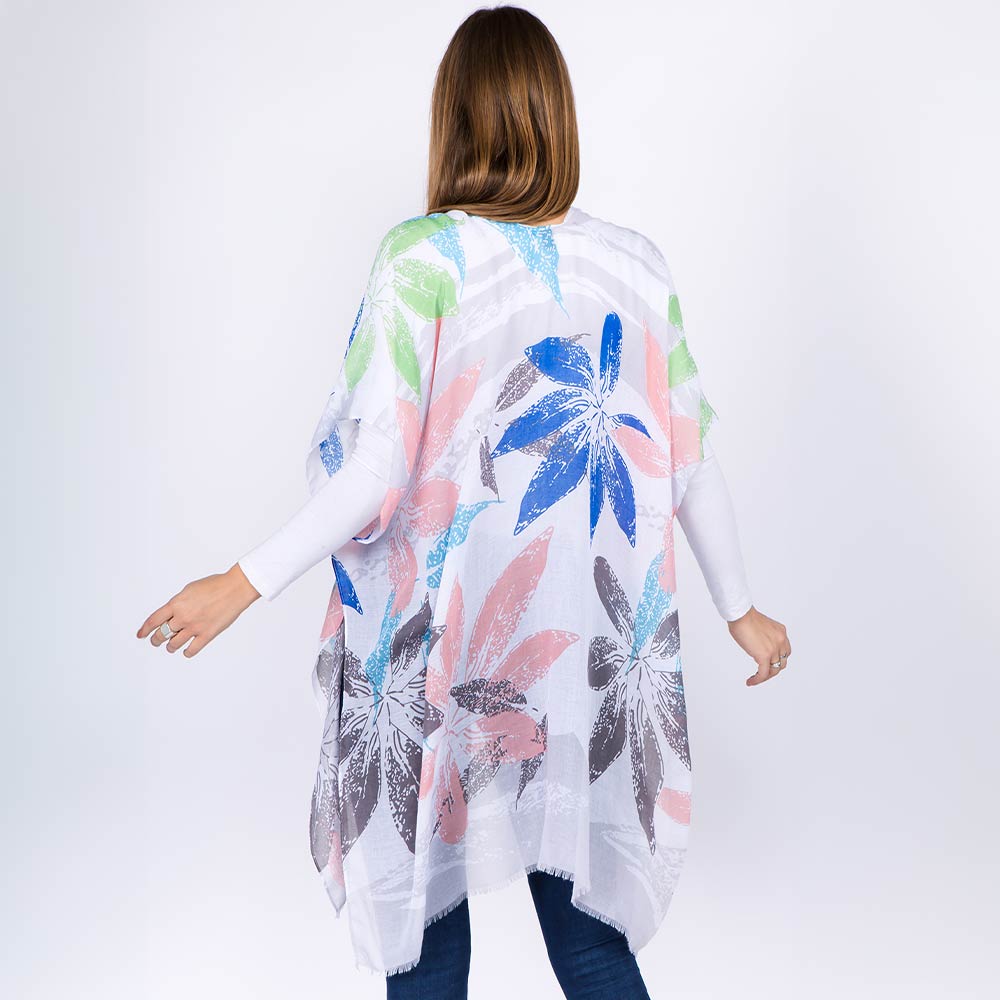 Lightweight Floral Print Kimono Poncho