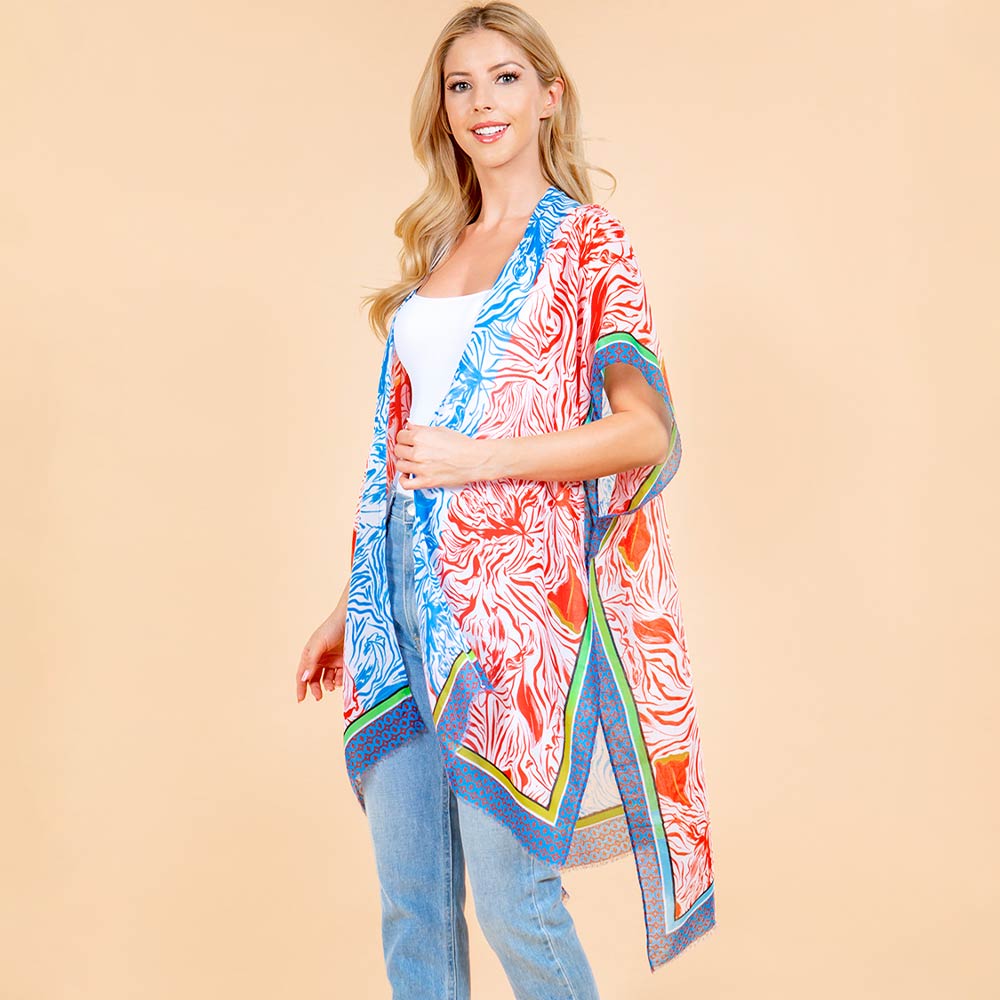 • Flowy open front kimono wrap designed with a relaxed silhouette and detailed printed accents for effortless layering. Easy to style over tops or dresses, it adds light coverage, movement, and a polished finish for everyday wear, travel outfits, or casual occasions.