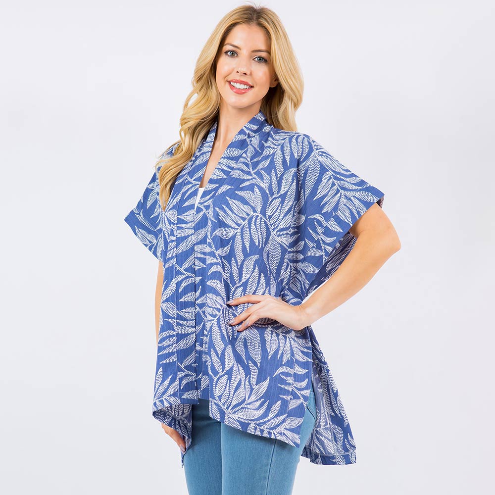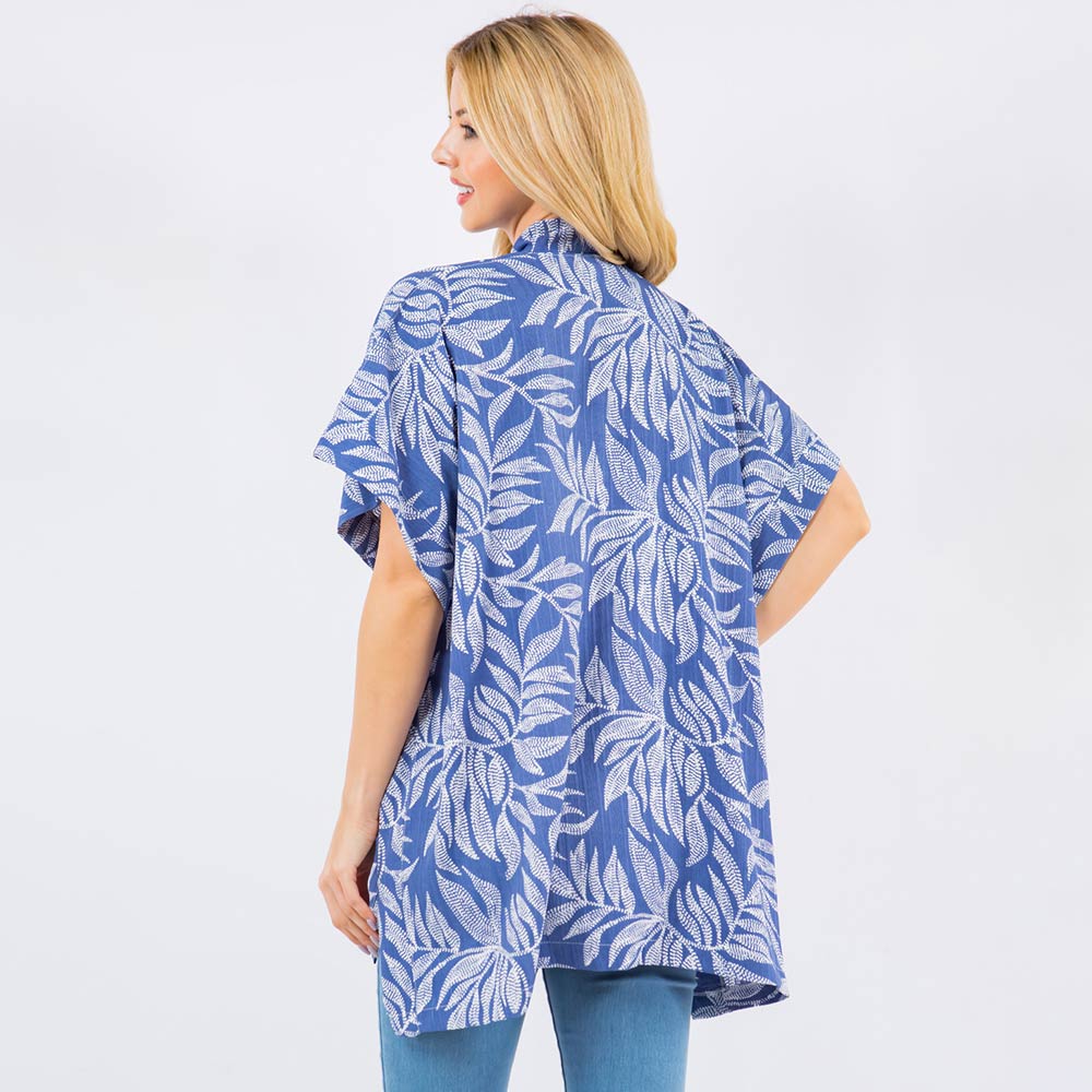 Lightweight Short Sleeves Leaf Pattern Open Front Kimono Poncho