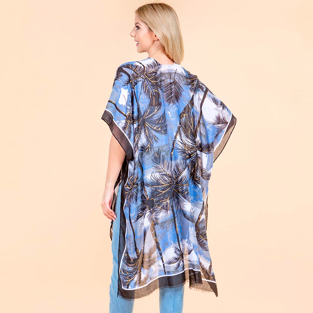 Palm Tree Leaf Pattern Open Front Kimono Poncho Wrap