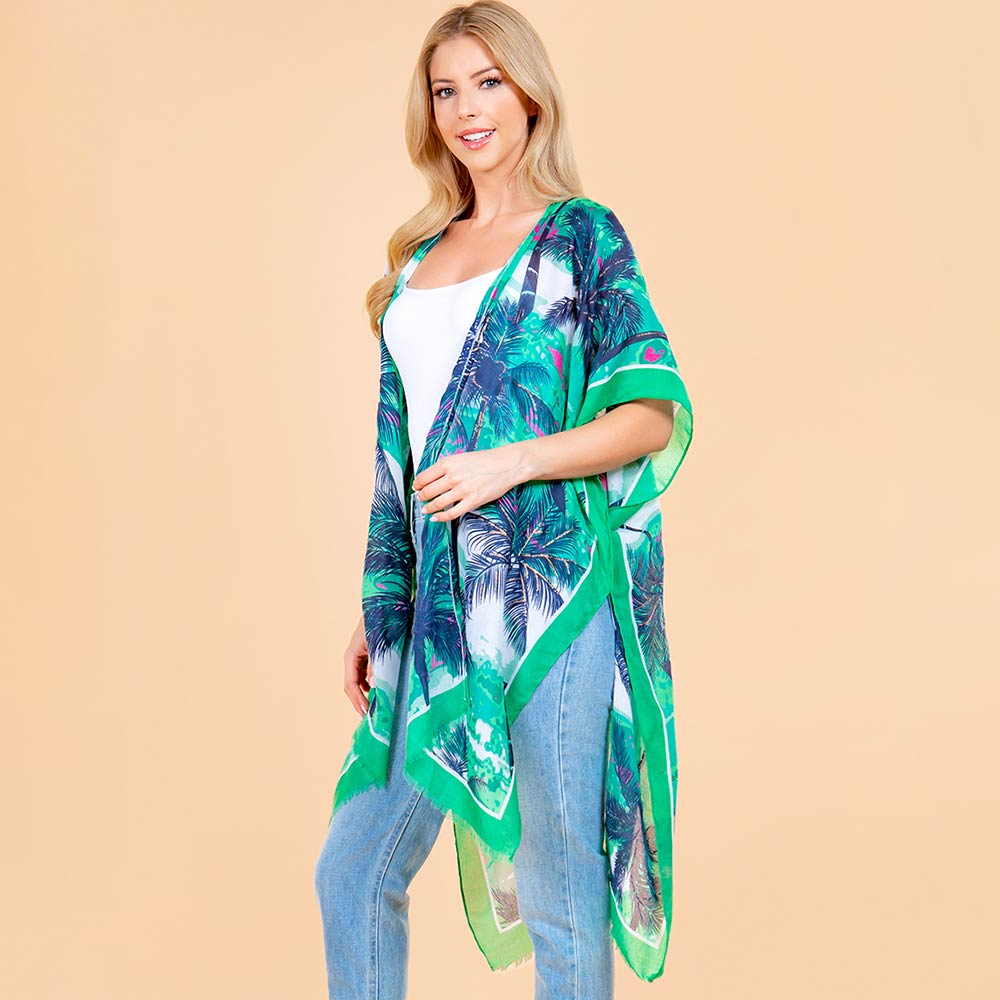 Palm Tree Leaf Pattern Open Front Kimono Poncho Wrap Palm Tree Leaf Pattern Open Front Kimono Poncho Wrap Palm Tree Leaf Pattern Open Front Kimono Poncho Wrap