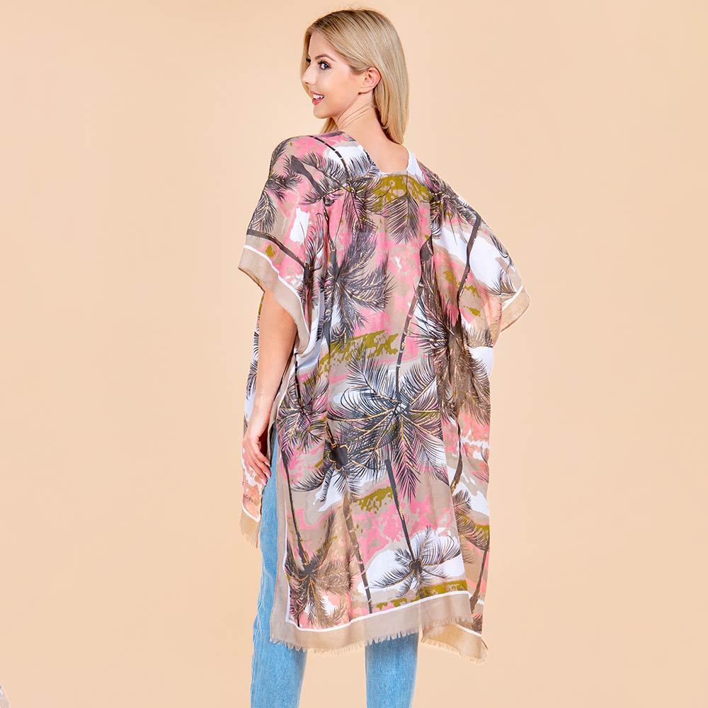 Palm Tree Leaf Pattern Open Front Kimono Poncho Wrap Palm Tree Leaf Pattern Open Front Kimono Poncho Wrap Palm Tree Leaf Pattern Open Front Kimono Poncho Wrap