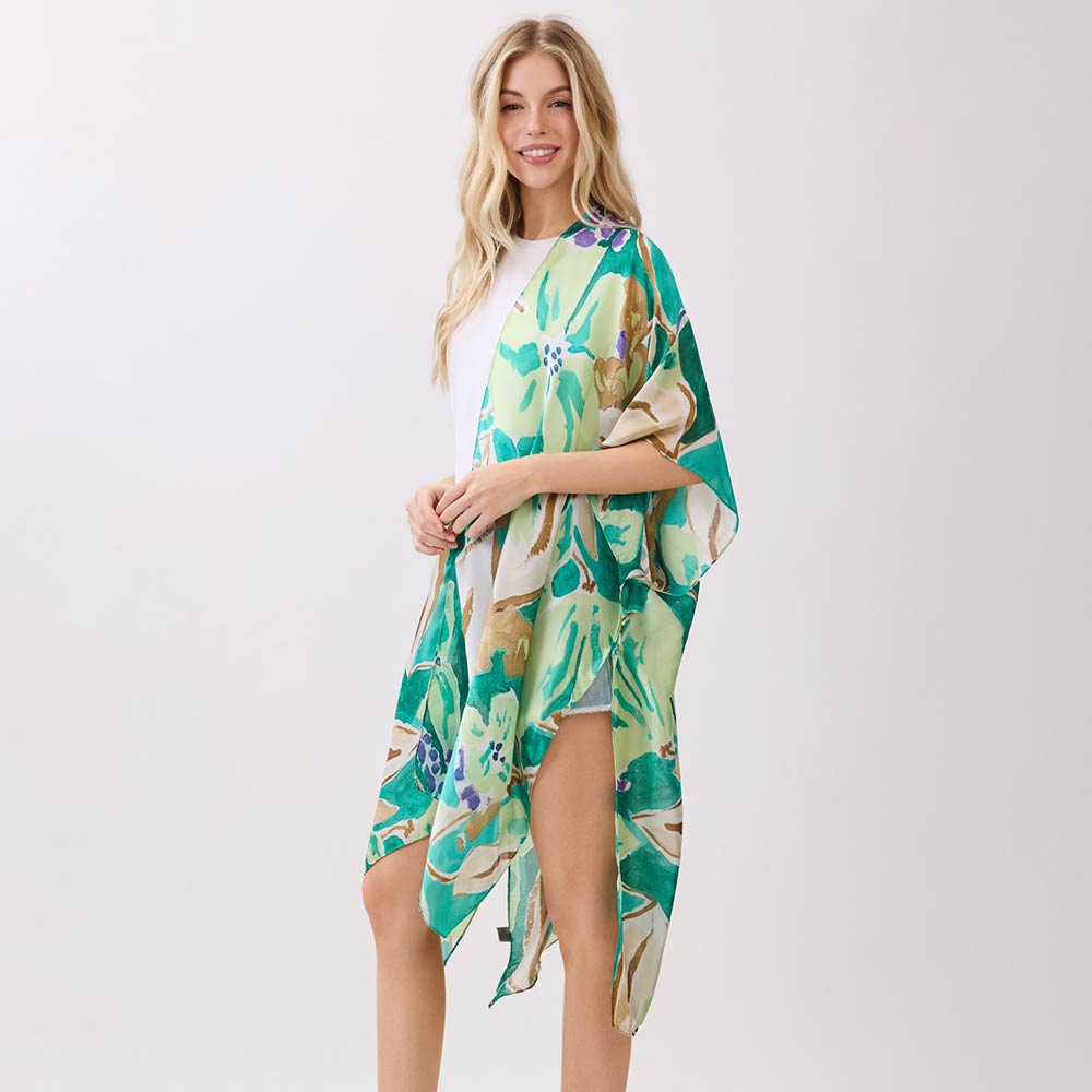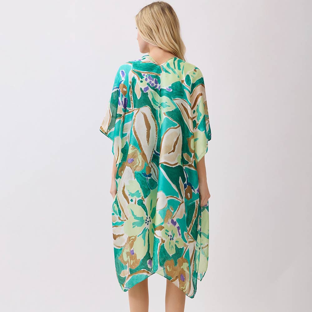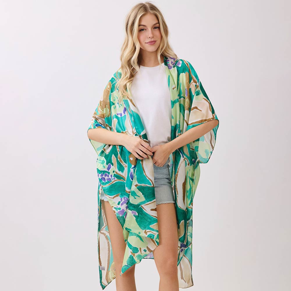 Vibrant Botanical Floral Print Silky Feel Kimono Poncho