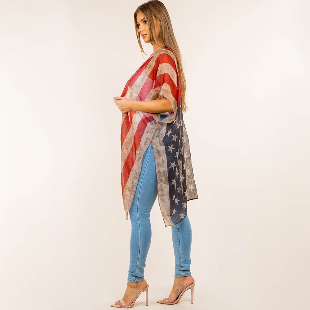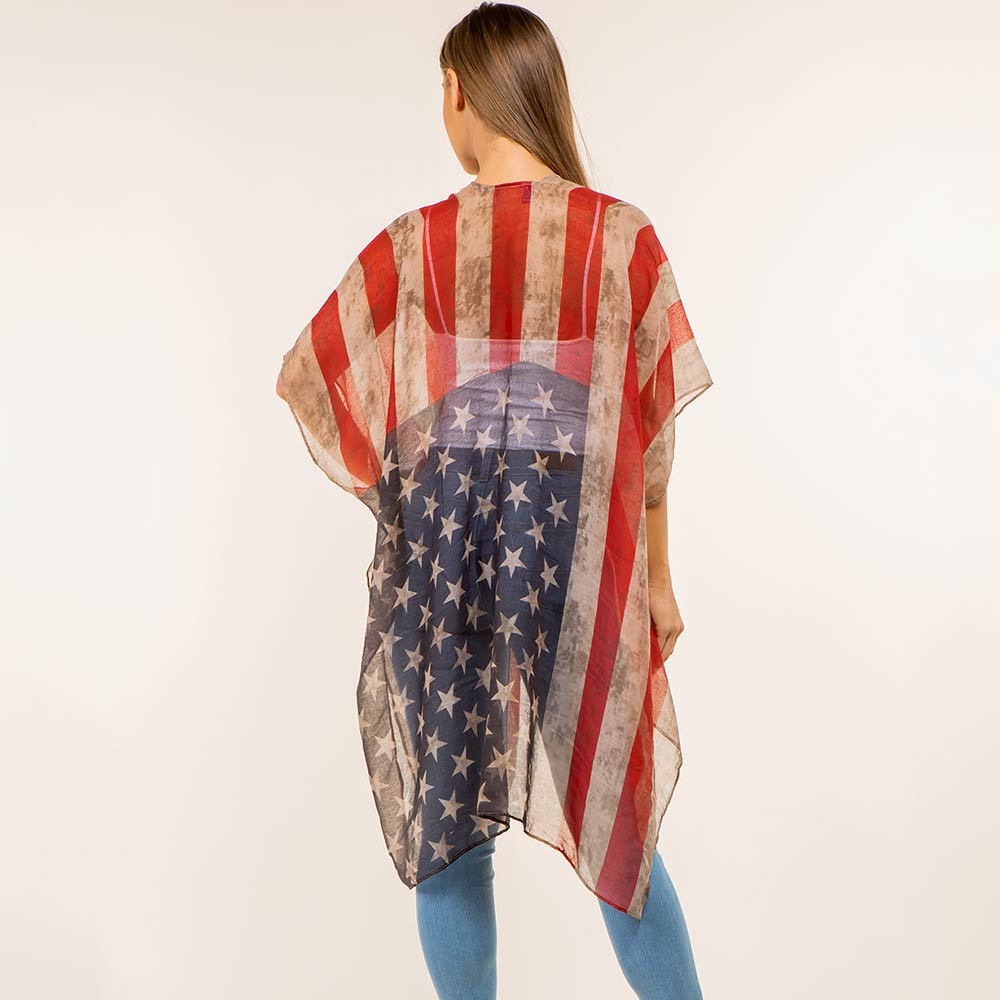 Vintage American USA Flag Printed Open Front Kimono Poncho Vintage American USA Flag Printed Open Front Kimono Poncho Vintage American USA Flag Printed Open Front Kimono Poncho
