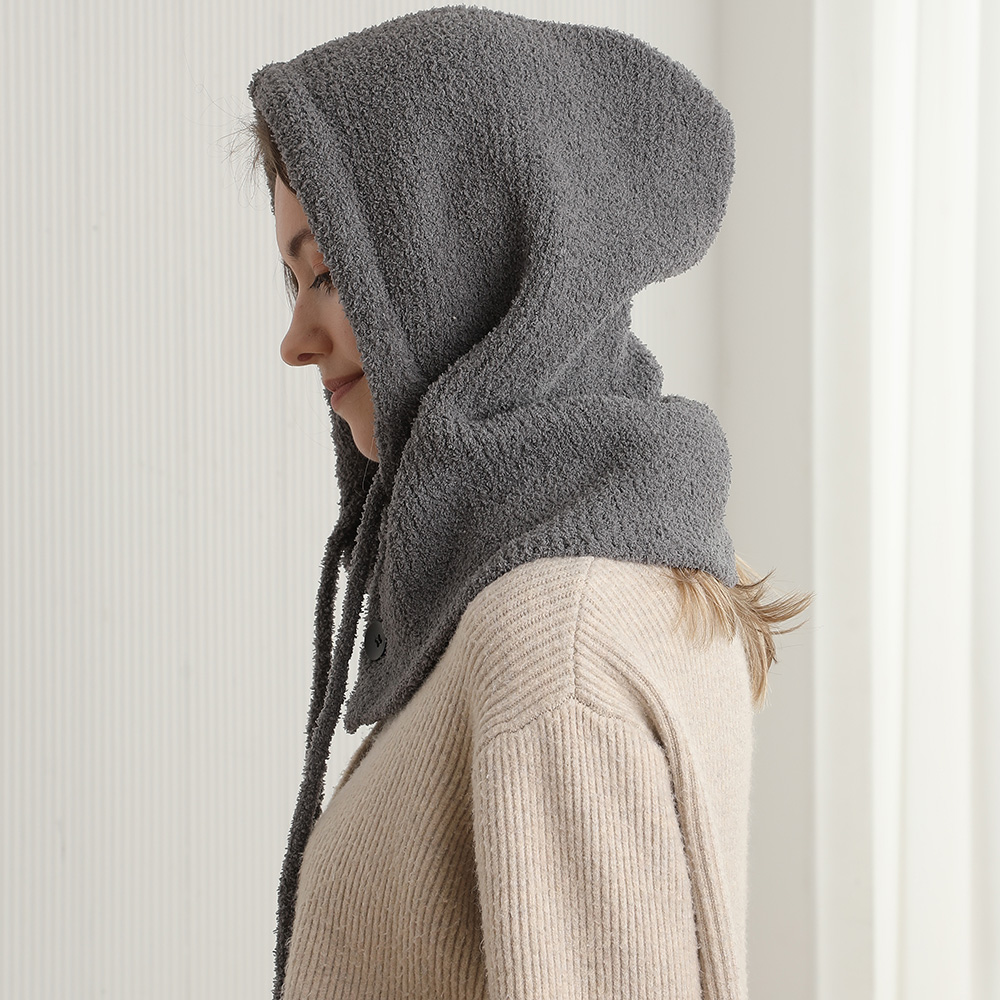 Cozy Drawstring Snood Balaclava Hooded Knit Scarf Hat