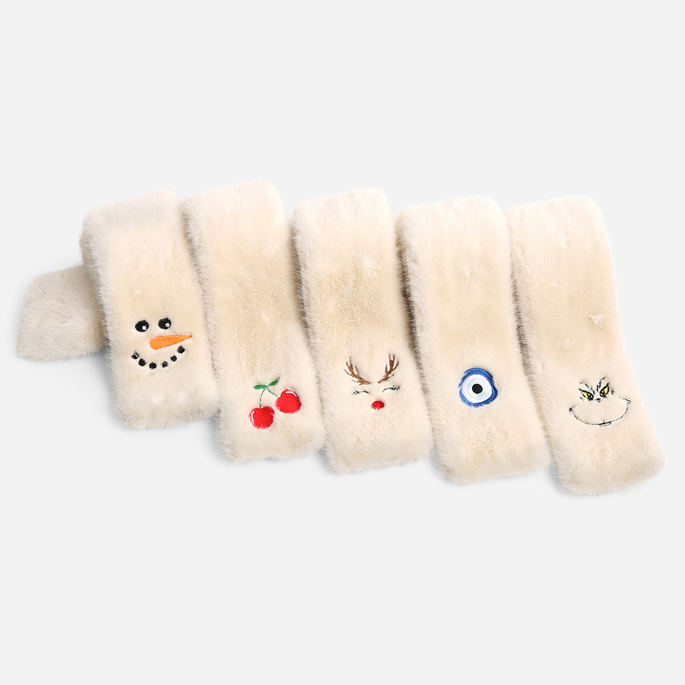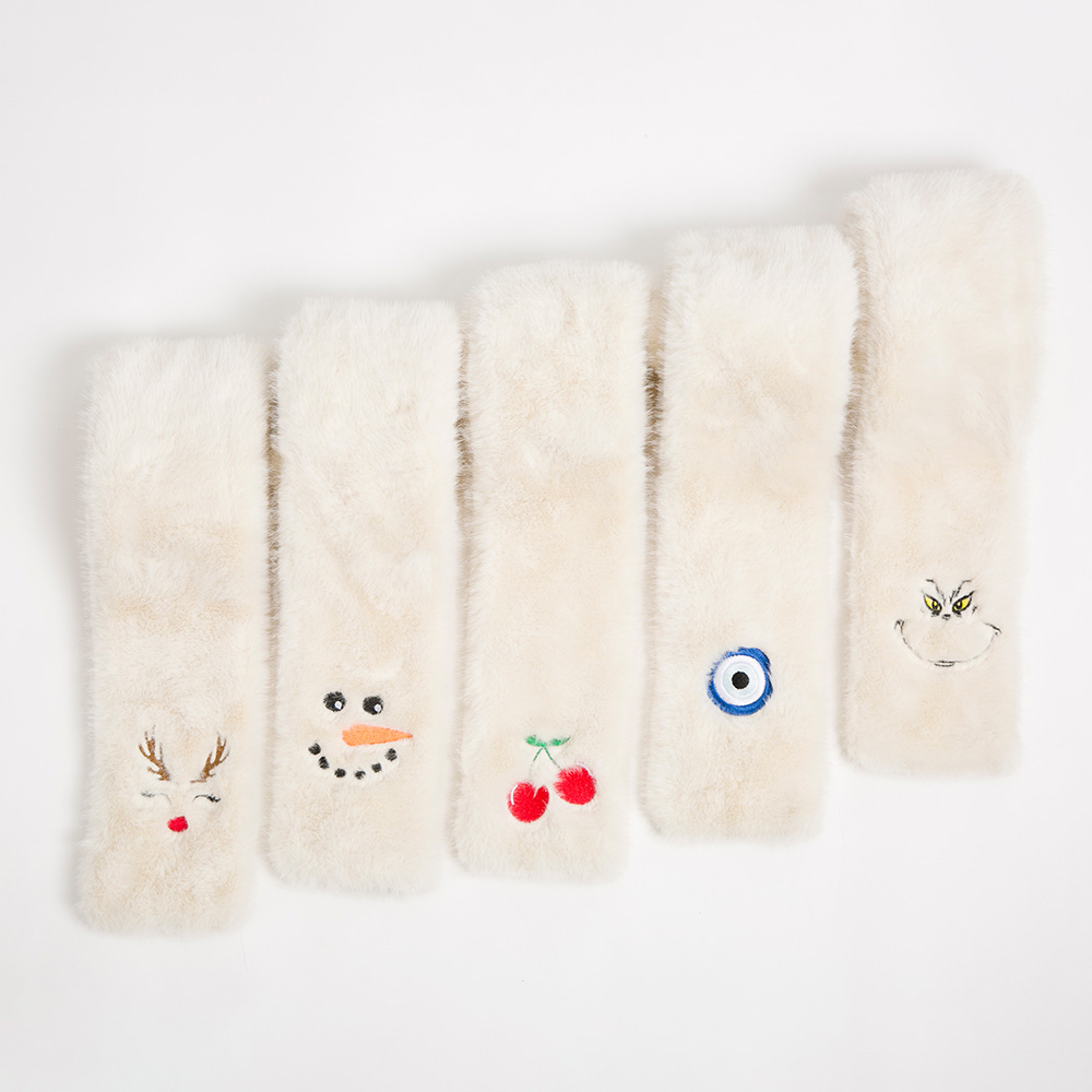 • Cherry Embroidered Faux Fur Scarf – Soft, cozy winter scarf with charming cherry detail. Adds playful elegance to your cold-weather look while keeping you warm and stylish. Perfect for festive outfits or everyday wear.