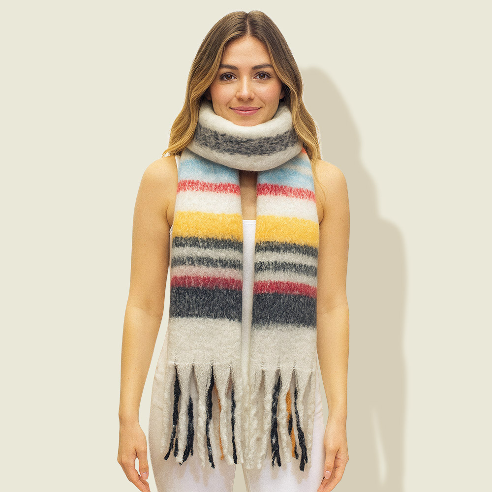 Fringed Fuzzy Striped Winter Scarf