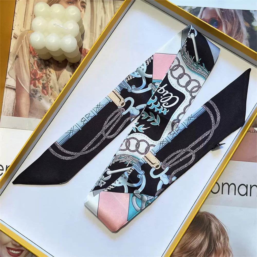 Details • Size : 2" X 35.4" • Material : 100% Polyester • Elegant twilly scarf featuring a refined chain-inspired pattern designed for versatile styling. Ideal for wrapping on handbags, tying around the neck, wrist, ponytail, or hat for a chic accent. A timeless fashion accessory that elevates everyday outfits, travel looks, and polished ensembles with effortless style.