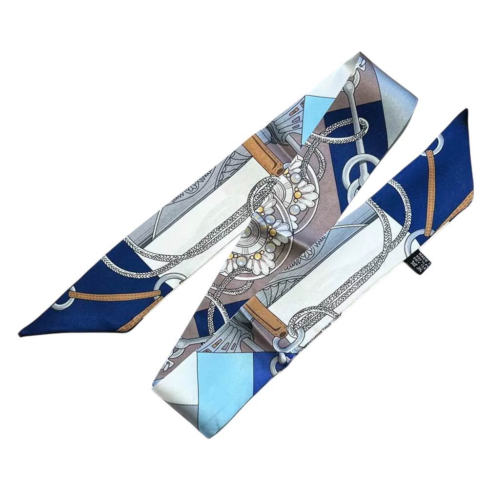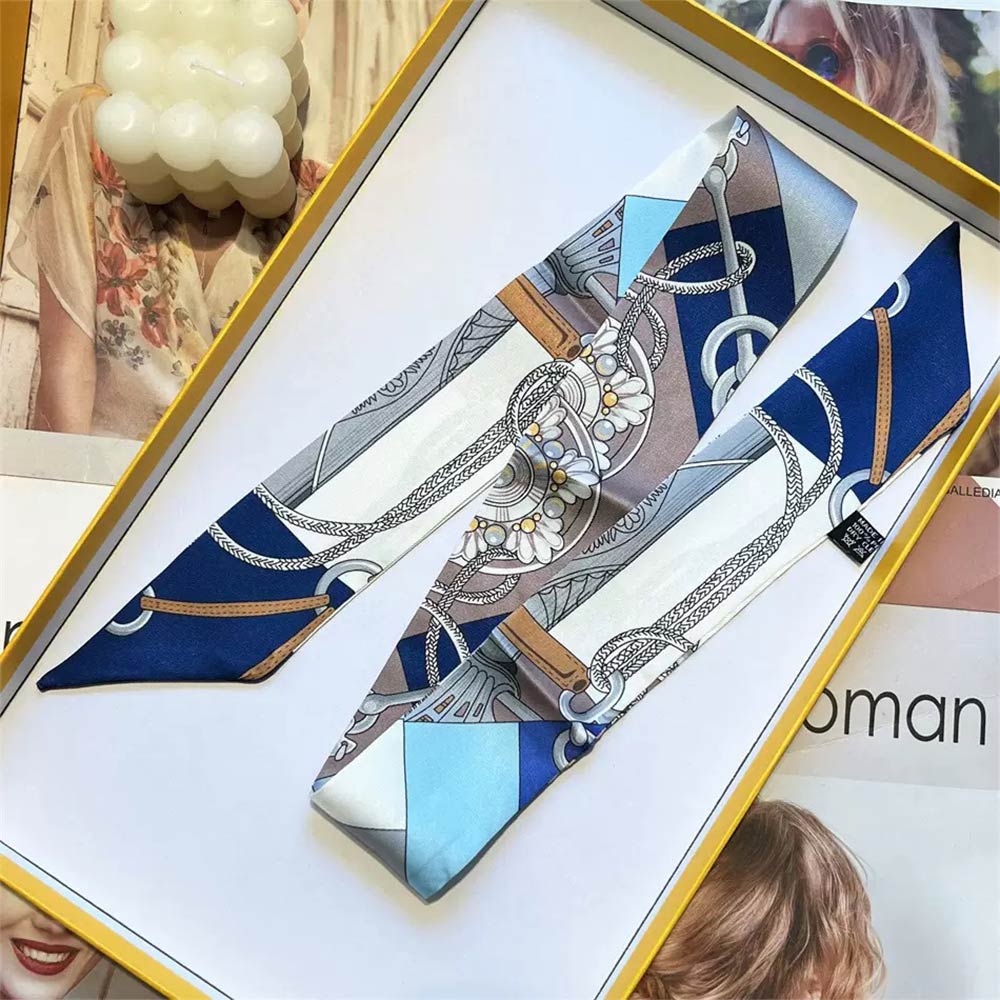 Details • Size : 2" X 35.4" • Material : 100% Polyester • Elegant twilly scarf featuring a refined chain-inspired pattern designed for versatile styling. Ideal for wrapping on handbags, tying around the neck, wrist, ponytail, or hat for a chic accent. A timeless fashion accessory that elevates everyday outfits, travel looks, and polished ensembles with effortless style.