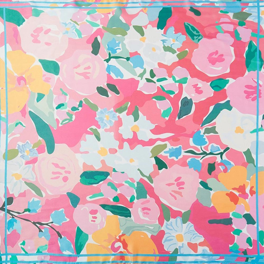 • Elegant square fashion scarf featuring a soft, painterly floral garden design. Ideal for refined everyday styling on the neck, hair, wrist, or handbag, this versatile accessory adds a graceful, feminine touch to casual looks, office outfits, and boutique-ready fashion collections.