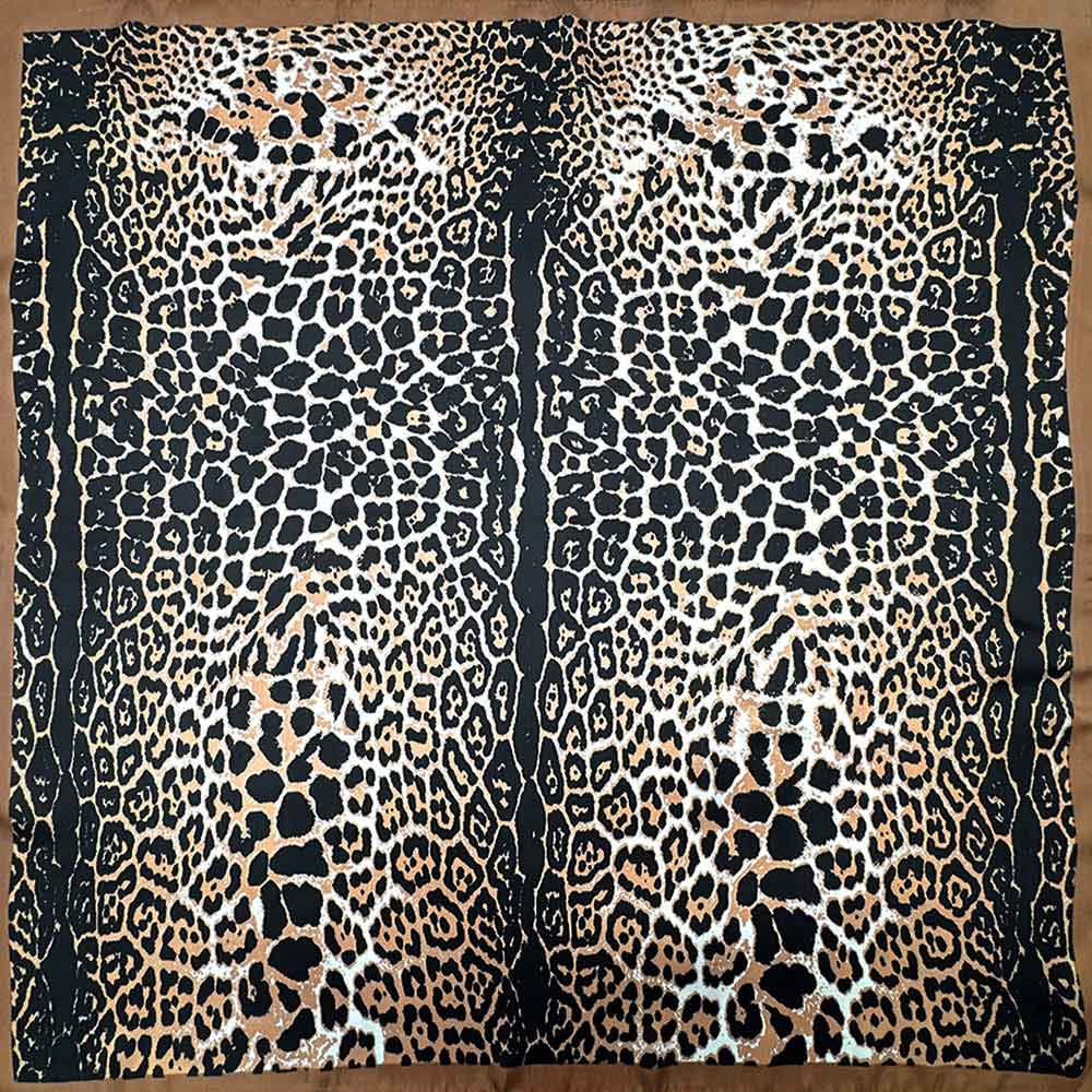 • This square fashion scarf showcases an allover leopard-inspired pattern for a bold yet timeless statement. Designed for versatile styling, it can be worn around the neck, tied in the hair, or styled on a bag for added flair. A go-to accessory for elevating everyday outfits or completing dressy looks, ideal for boutiques seeking trend-forward scarves with strong visual impact and multiple styling options.