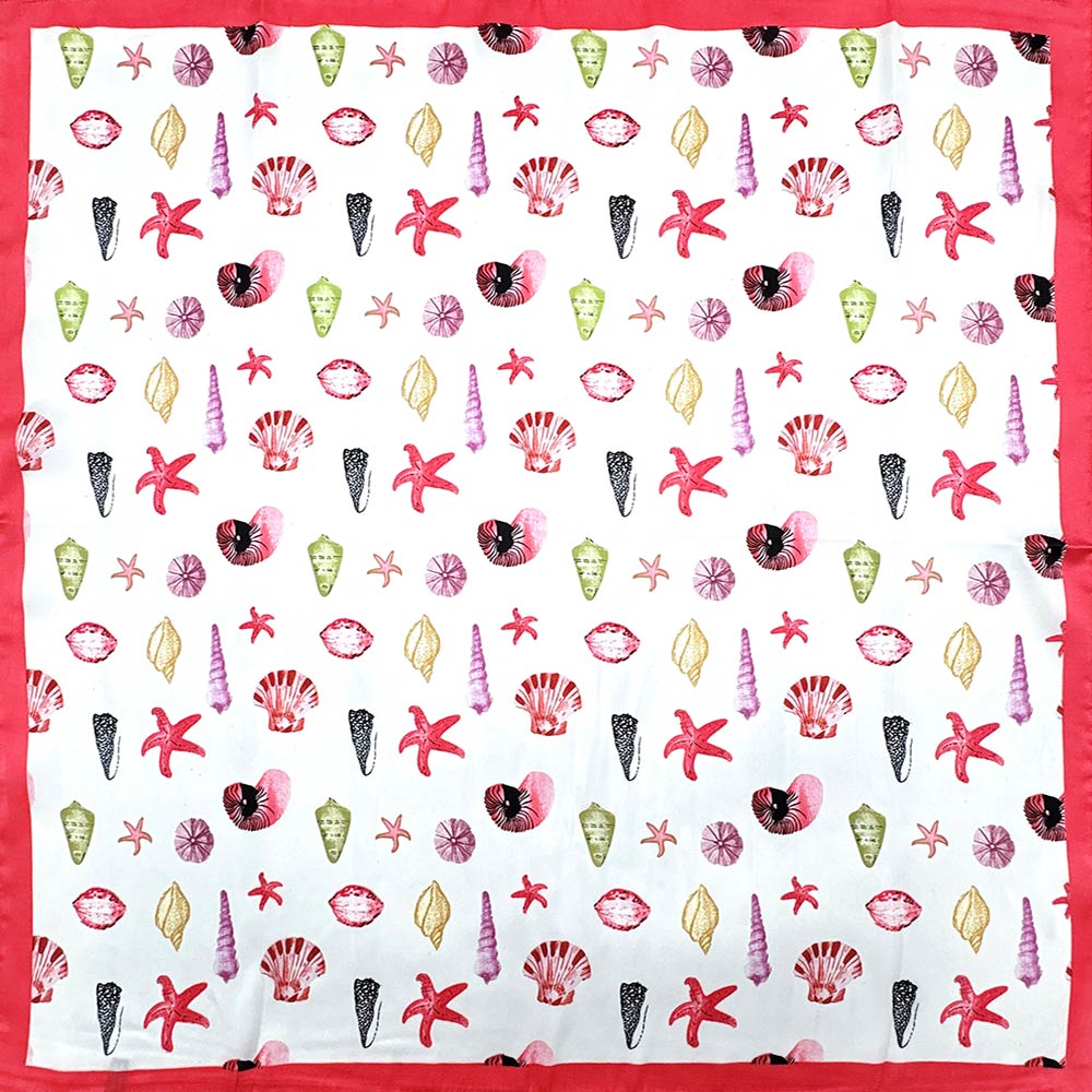 • This square fashion scarf features a playful sea life pattern with starfish, shells, and ocean-inspired motifs for a fresh, coastal feel. Designed for versatile styling around the neck, hair, or handbag, it adds personality to casual and resort looks. Ideal for seasonal collections, beach boutiques, gifts, and everyday accessorizing with a fun, nature-inspired touch.