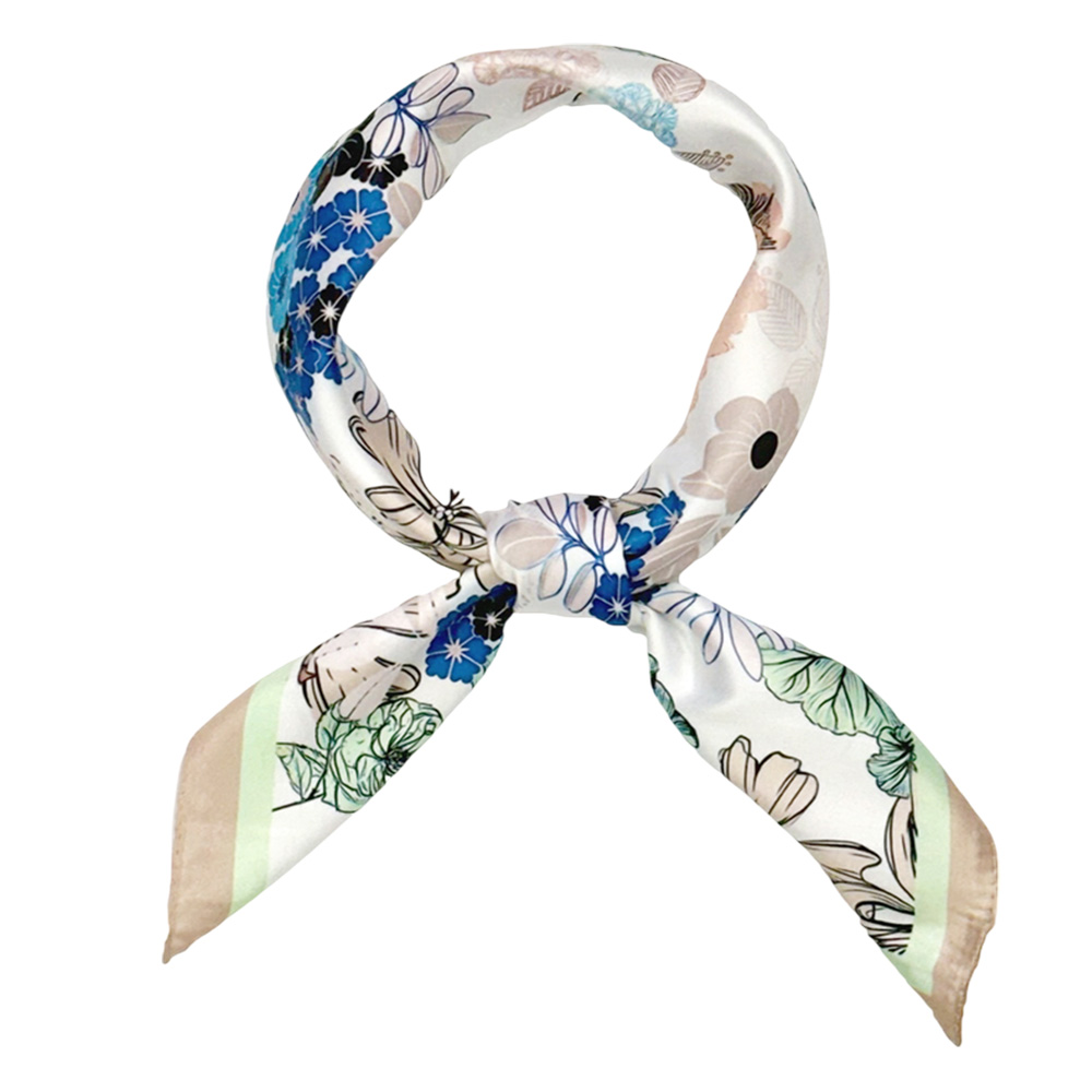Watercolor Floral Pattern Printed Square Silky Satin Bandana Scarf