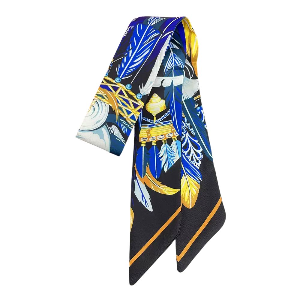 • Feather print skinny scarf designed for versatile styling on hair, handbags, wrists, or necks. The elongated silhouette adds a bold, artistic accent to everyday outfits, boutique displays, and giftable collections, offering an easy way to elevate casual or dressy looks.