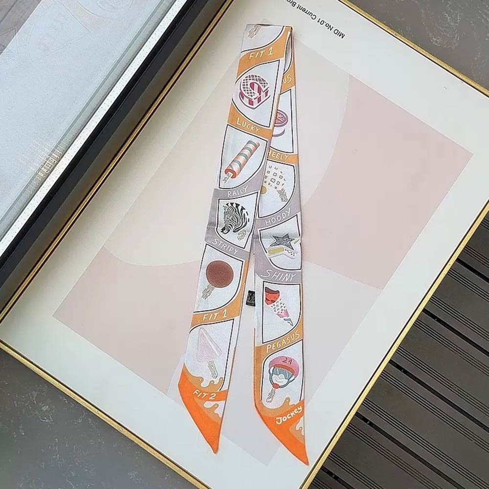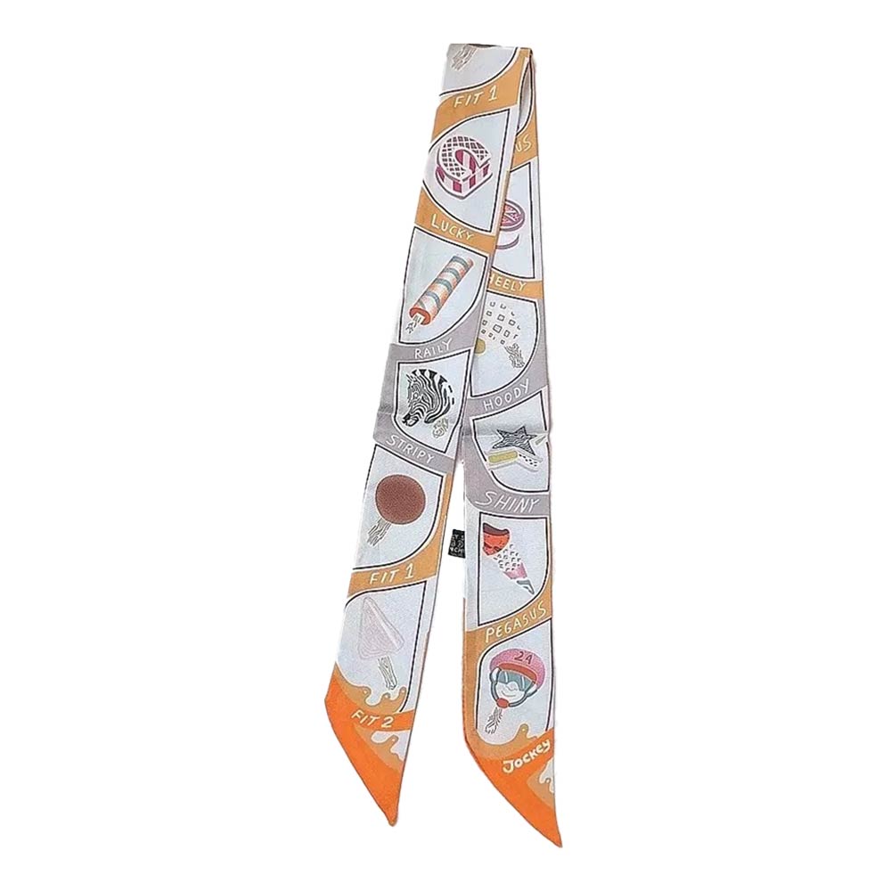 • Unique skinny scarf featuring a playful graphic icon print with an elongated twilly silhouette. Perfect for styling around the neck, wrist, hair, or handbag handle for versatile looks. Lightweight and easy to wear, ideal for everyday outfits, travel styling, gifting, and adding a fun, modern accent to any ensemble.