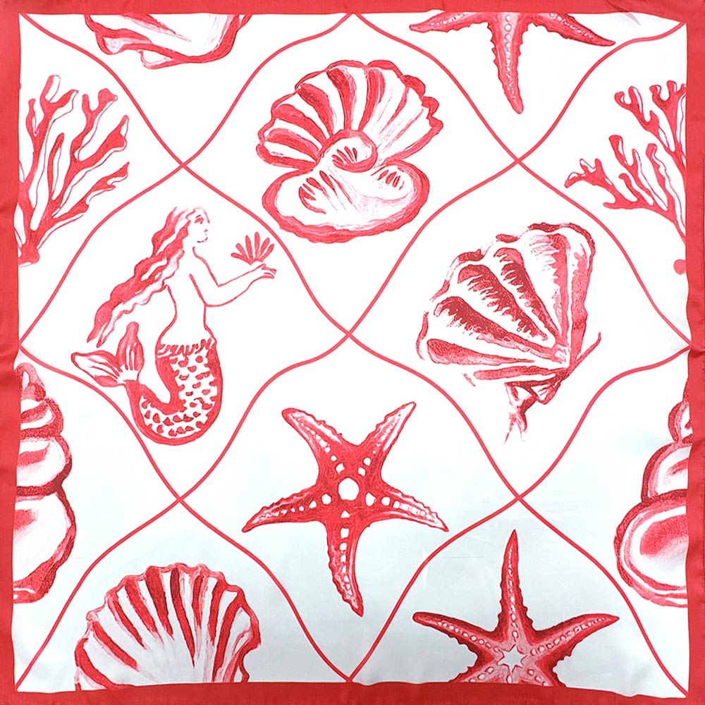 • Whimsical mermaid and seashell square scarf featuring ocean-inspired illustrations in a classic 27.6 x 27.6 inch size. Ideal for styling around the neck, hair, bag, or wrist, this versatile accessory adds a playful coastal touch to everyday outfits and seasonal looks.