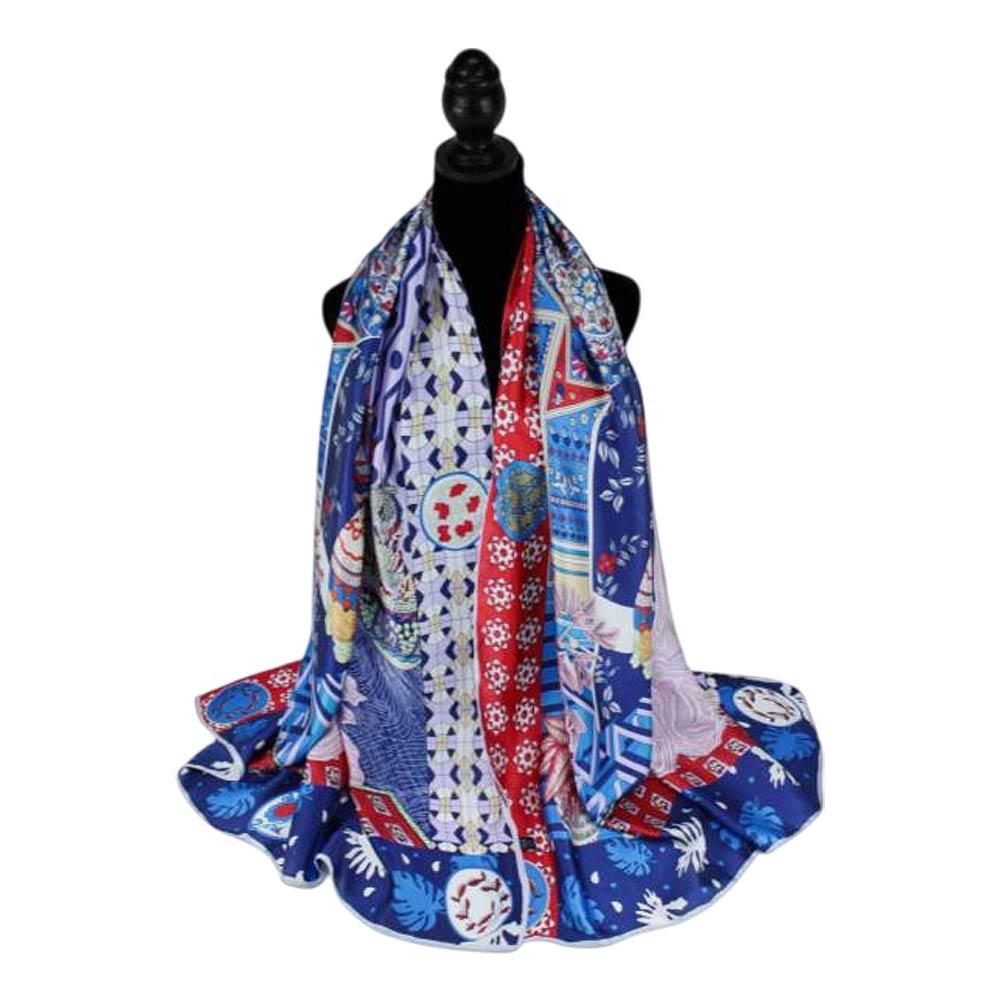 Details • Size : 35" X 78" • Material : 100% Viscose • Breathable, Lightweight, Skin-friendly and Soft • This artistic square scarf features an intricate elephant centerpiece framed by geometric patterns and decorative accents for a statement-making look. Designed for versatile styling on the neck, hair, or handbag, it’s a standout accessory for boutiques, gifting, travel collections, and fashion-forward everyday wear.