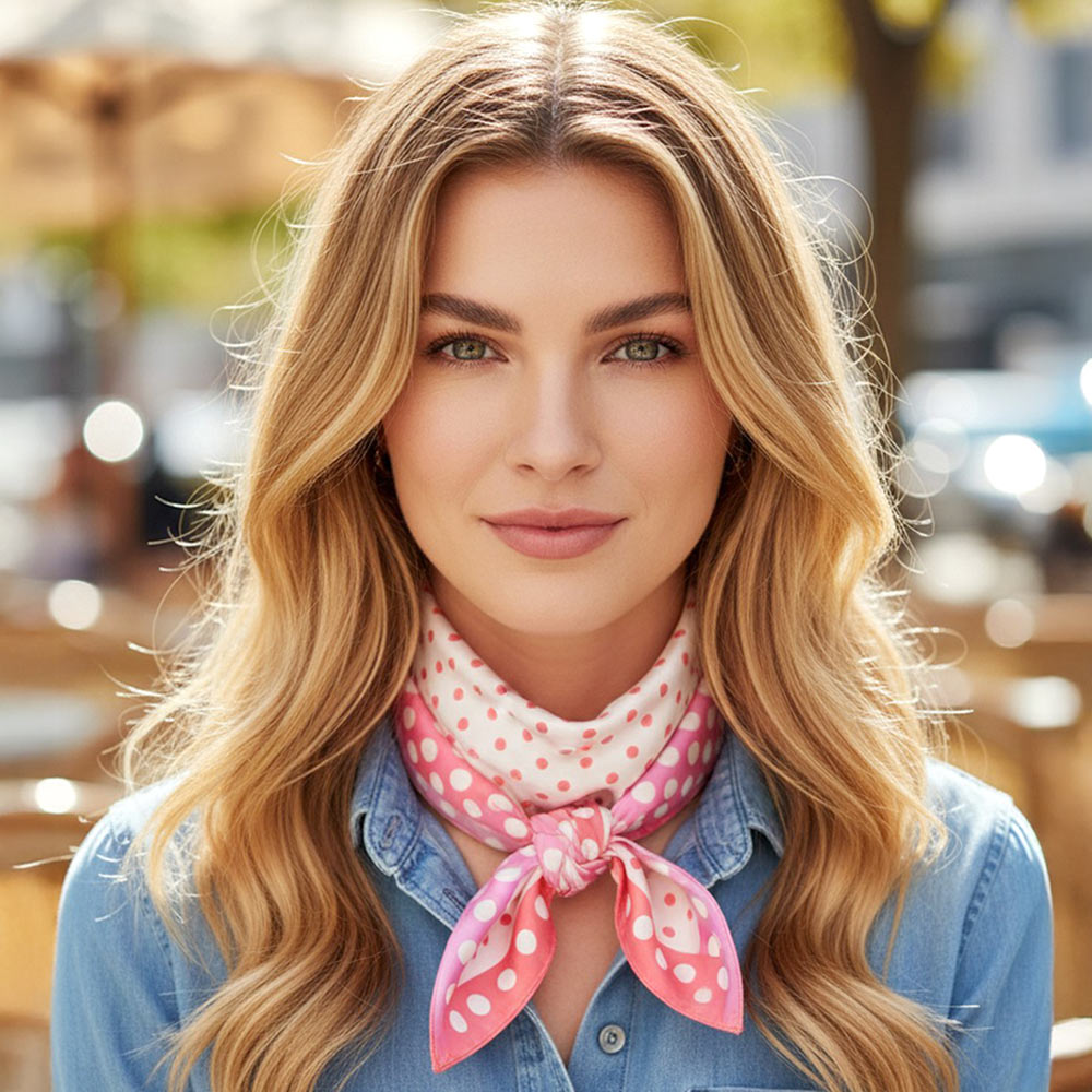• Timeless square scarf featuring an elegant polka dot pattern and refined border design. Perfect for styling around the neck, hair, bag, or wrist to elevate everyday outfits. A versatile accessory ideal for boutiques, gifting, seasonal collections, and effortless fashion styling year round.