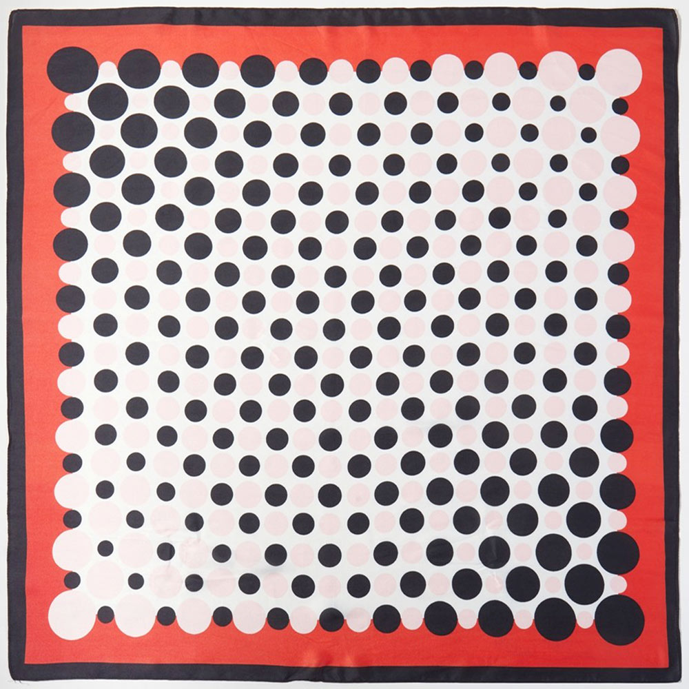 • Stylish square scarf designed with a bold polka dot pattern and clean framed layout. Easy to wear around the neck, hair, wrist, or bag for everyday styling. A versatile fashion accessory perfect for boutiques, gift shops, seasonal collections, and effortless outfit updates.