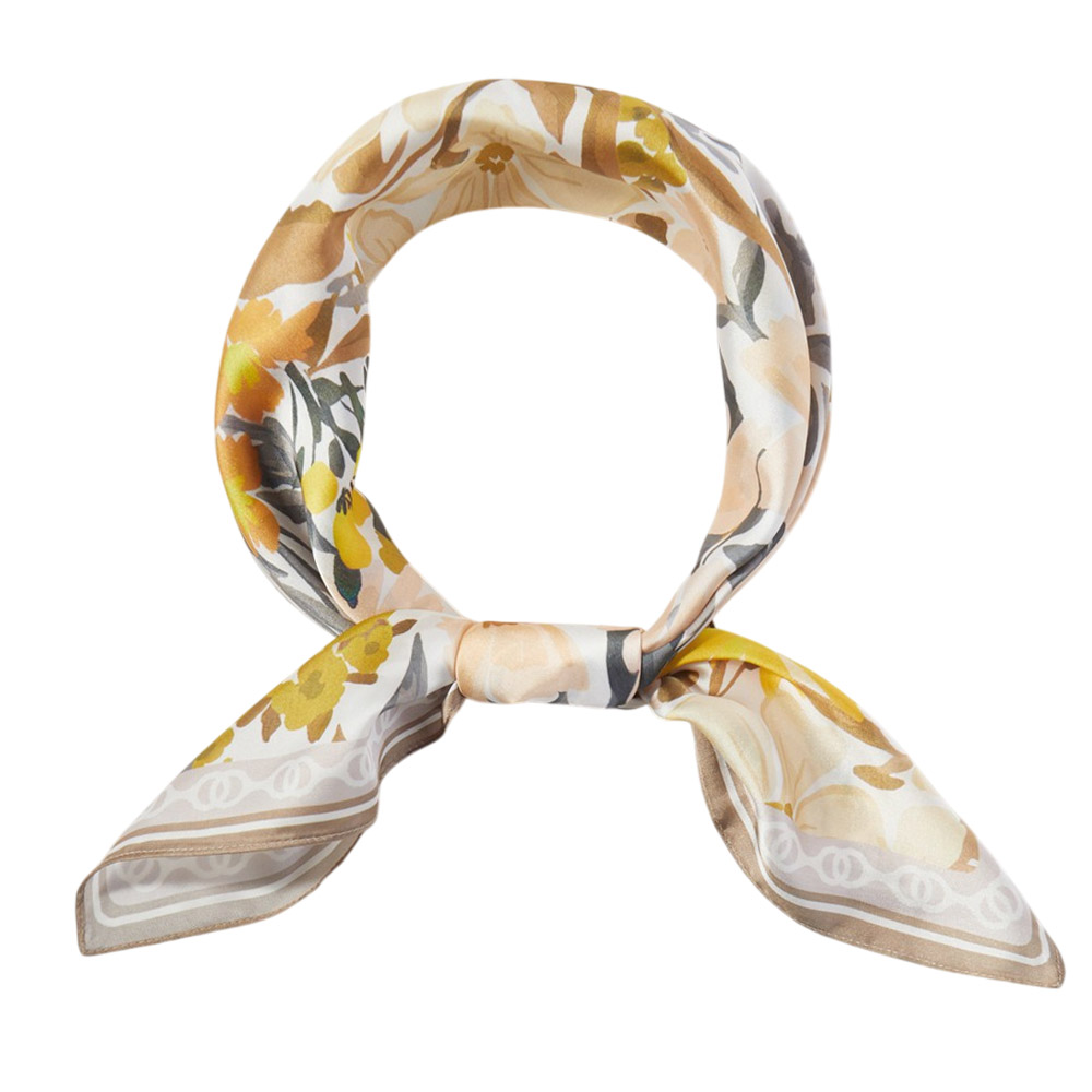 Details • Size : 27.5" X 27.5" • Material : 100% Polyester • Elegant square fashion scarf showcasing a vintage-inspired floral garden pattern with layered botanical details. Designed for versatile styling on the neck, hair, wrist, or handbag, this timeless accessory adds a soft romantic touch to everyday outfits, seasonal collections, and curated boutique assortments.