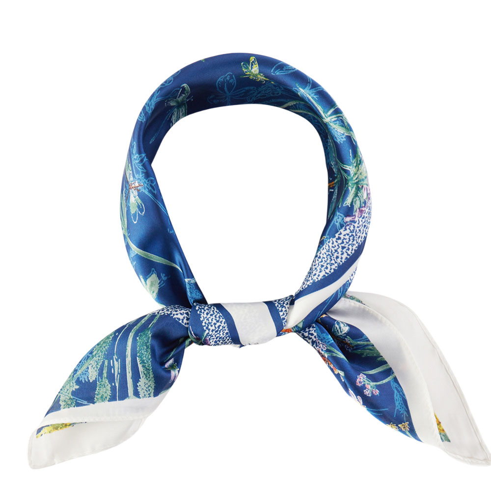 Details • Size : 27.5" X 27.5" • Material : 100% Polyester • This square scarf showcases a delicate botanical pattern that adds an elegant, nature-inspired touch to any outfit. Its lightweight design makes it perfect for styling as a neck wrap, hair accessory, or bag accent, bringing subtle charm and versatility to everyday looks.