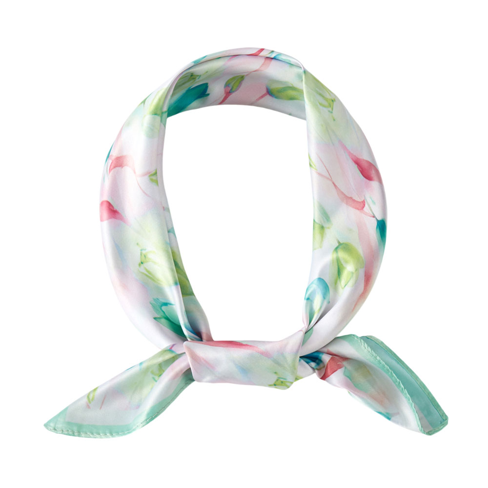 • This square scarf features a soft watercolor tulip design that adds a fresh, romantic touch to any look. Its lightweight feel and versatile styling options make it ideal as a neck scarf, hair accessory, or bag accent, bringing graceful charm to everyday outfits.