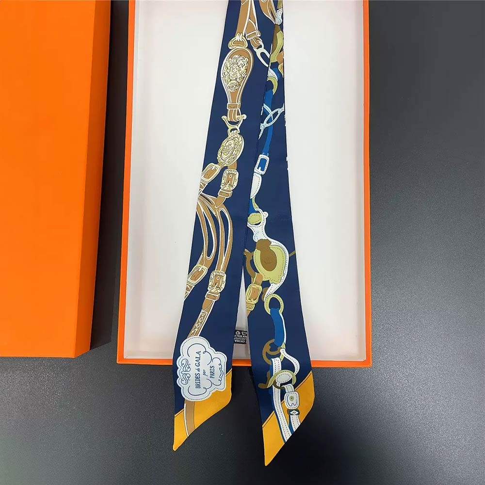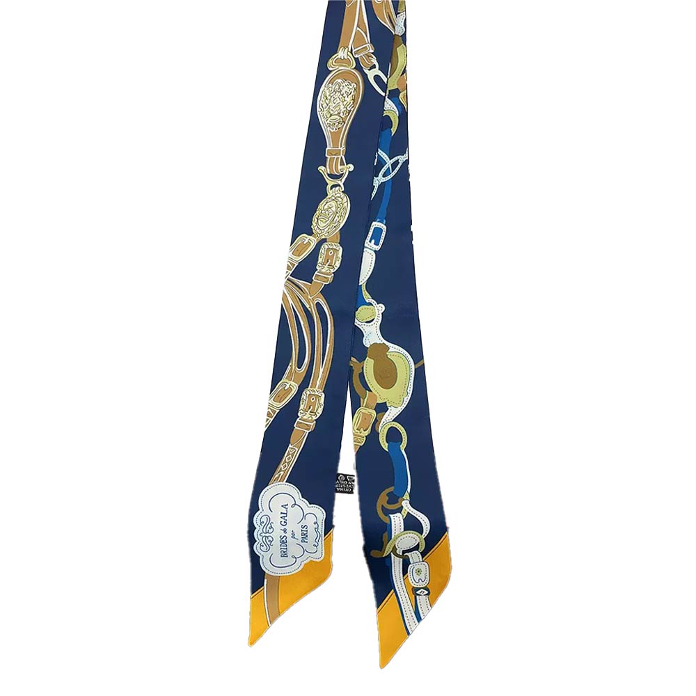 • This equestrian-inspired twilly scarf features a refined saddle and buckle motif designed for versatile styling. Perfect for wrapping around handbags, wrists, ponytails, or necks, it adds a polished accent ideal for everyday wear, gifting, and boutique displays.