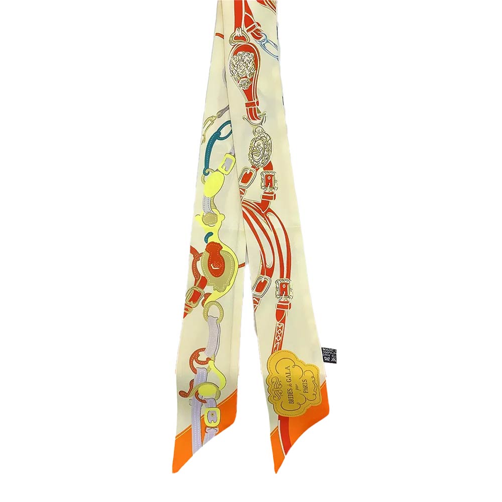 • This equestrian-inspired twilly scarf features a refined saddle and buckle motif designed for versatile styling. Perfect for wrapping around handbags, wrists, ponytails, or necks, it adds a polished accent ideal for everyday wear, gifting, and boutique displays.