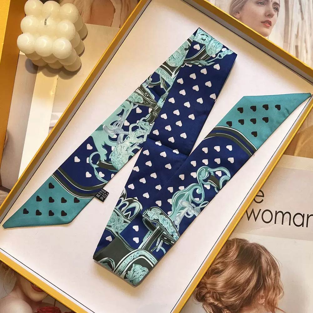 • This equestrian-inspired twilly scarf features an elegant saddle, strap, and buckle motif designed for versatile styling. Ideal for handbags, wrists, ponytails, or neck wear, it adds a refined accent for everyday outfits, gifting, travel styling, and boutique merchandising.