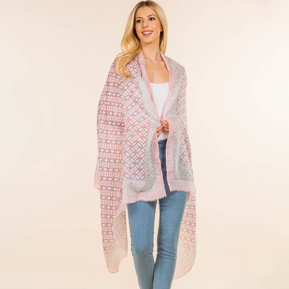 Geometric Pattern Fringe Shoulder Wrap Scarf