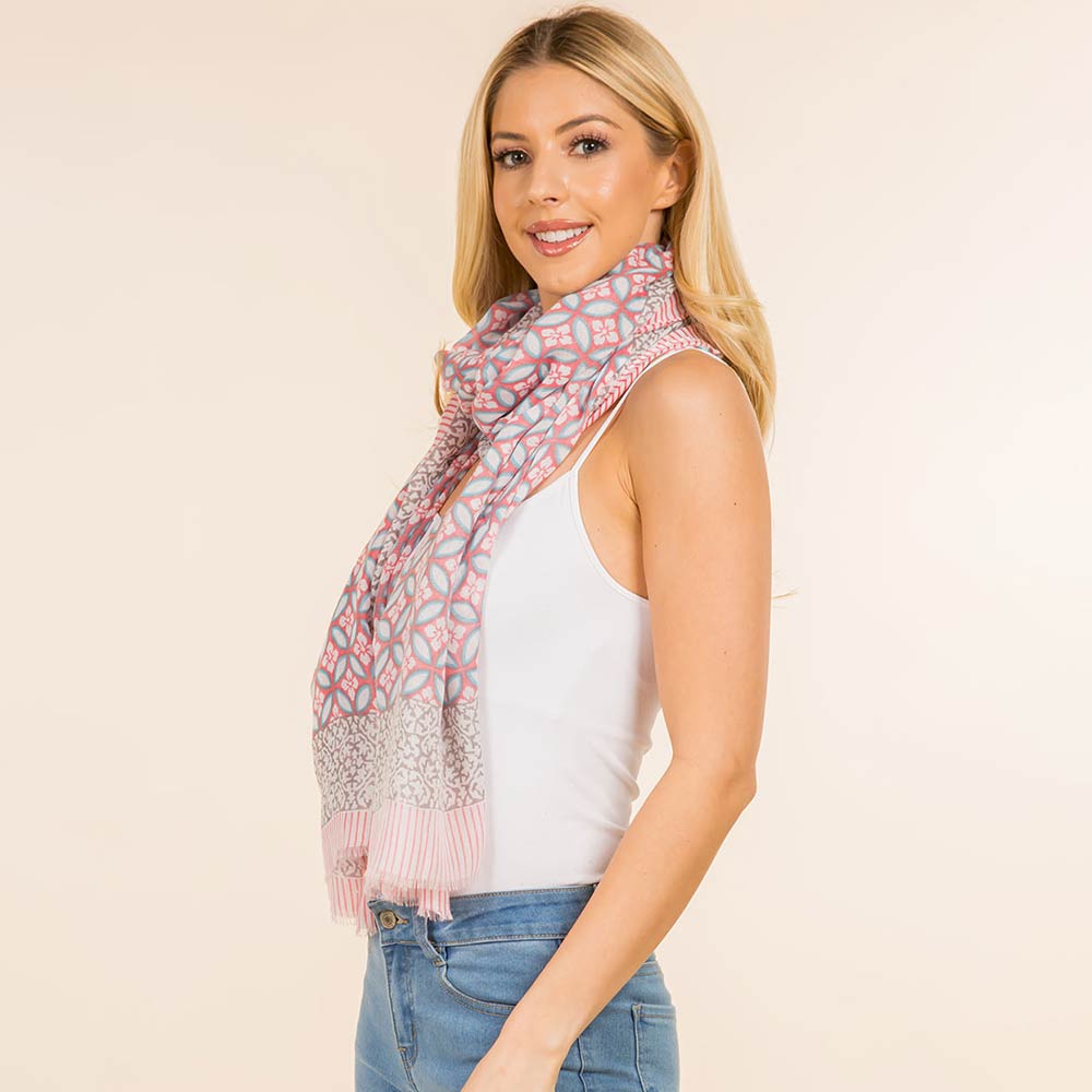 • Statement scarf featuring mixed geometric patterns and fringe trim for effortless layering. Designed to elevate casual and dressy outfits, this versatile accessory adds visual interest, movement, and boutique-ready appeal, making it ideal for everyday styling, seasonal transitions, and giftable fashion collections.