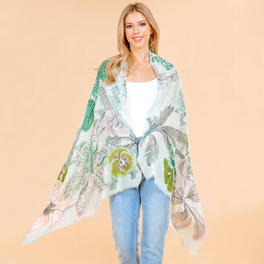 Lightweight Floral Pattern Salong Scarf
