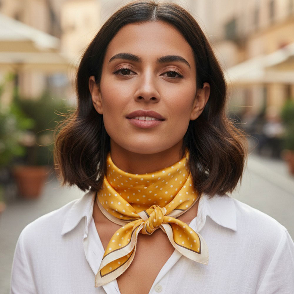 • Classic polka dot square scarf designed for versatile styling around the neck, hair, handbag, or wrist. A timeless accessory that adds a chic, retro-inspired touch to everyday outfits, seasonal looks, and boutique fashion collections while remaining easy to mix and match.