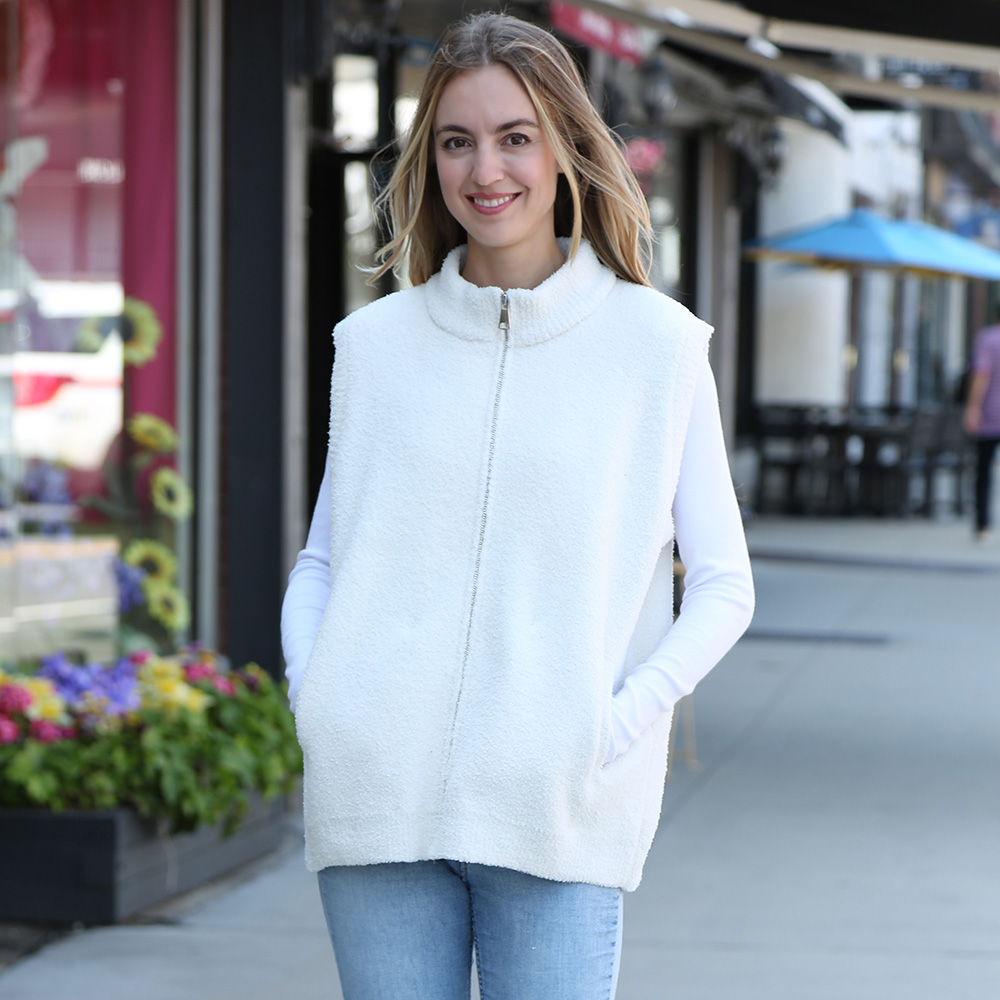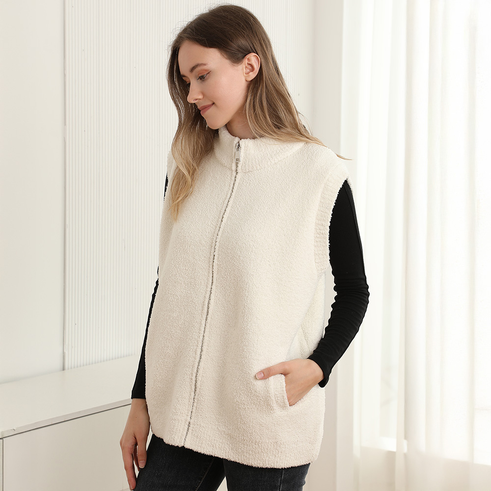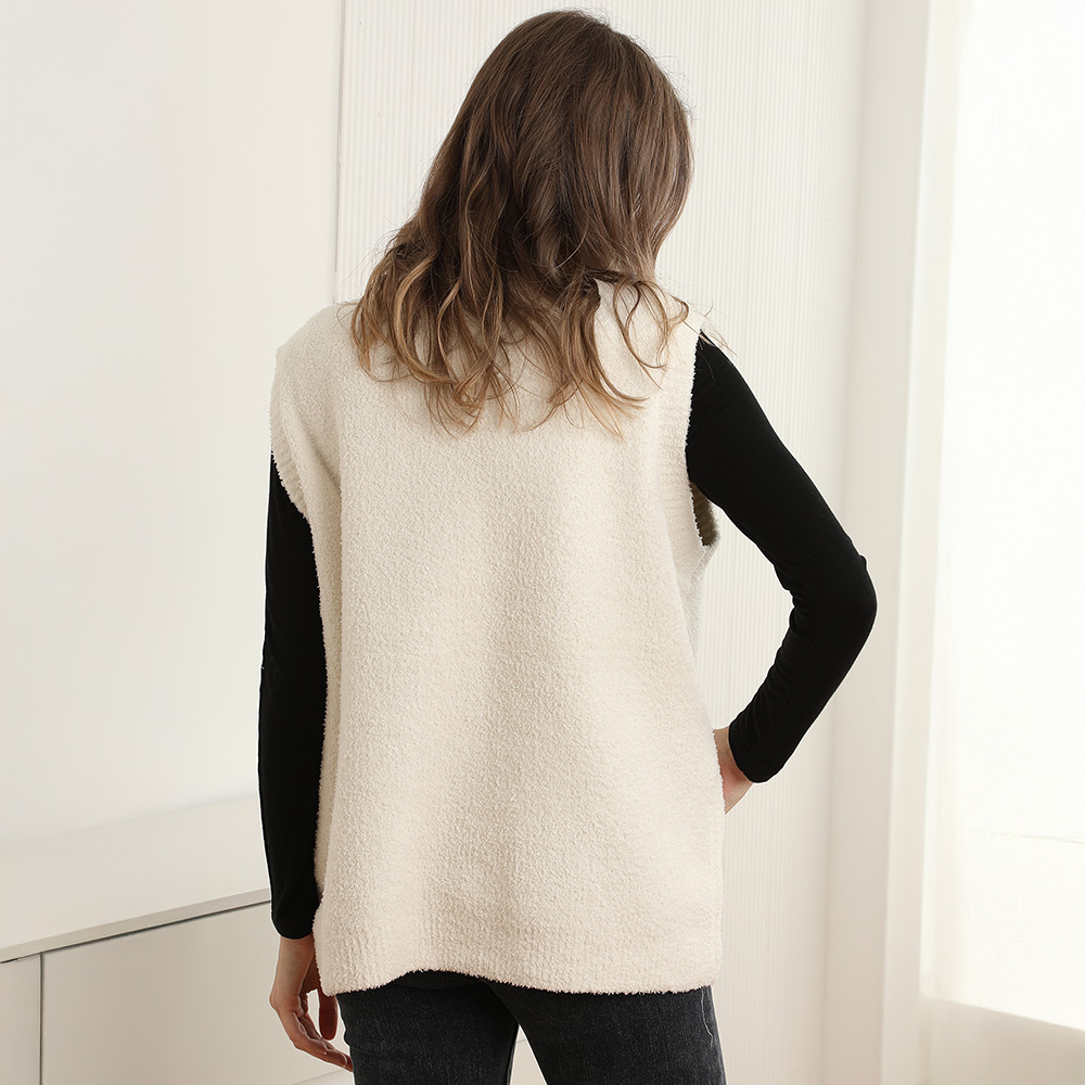 Cozy Solid Oversized Zipper Front Pocket Sweater Vest