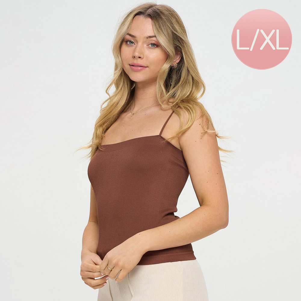 Ribbed Thin Strapped Seamless Tank Top