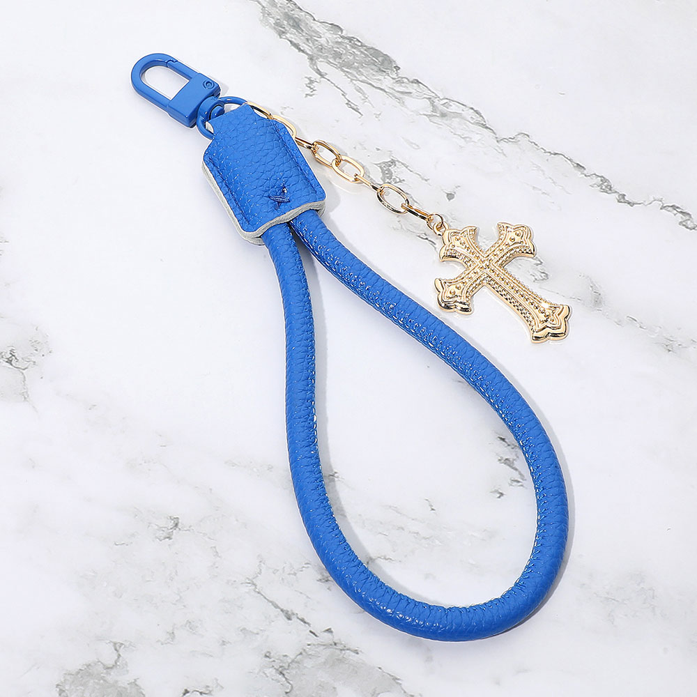 Cross Charm Drop Faux Leather Wristlet Keychain Bag Charm