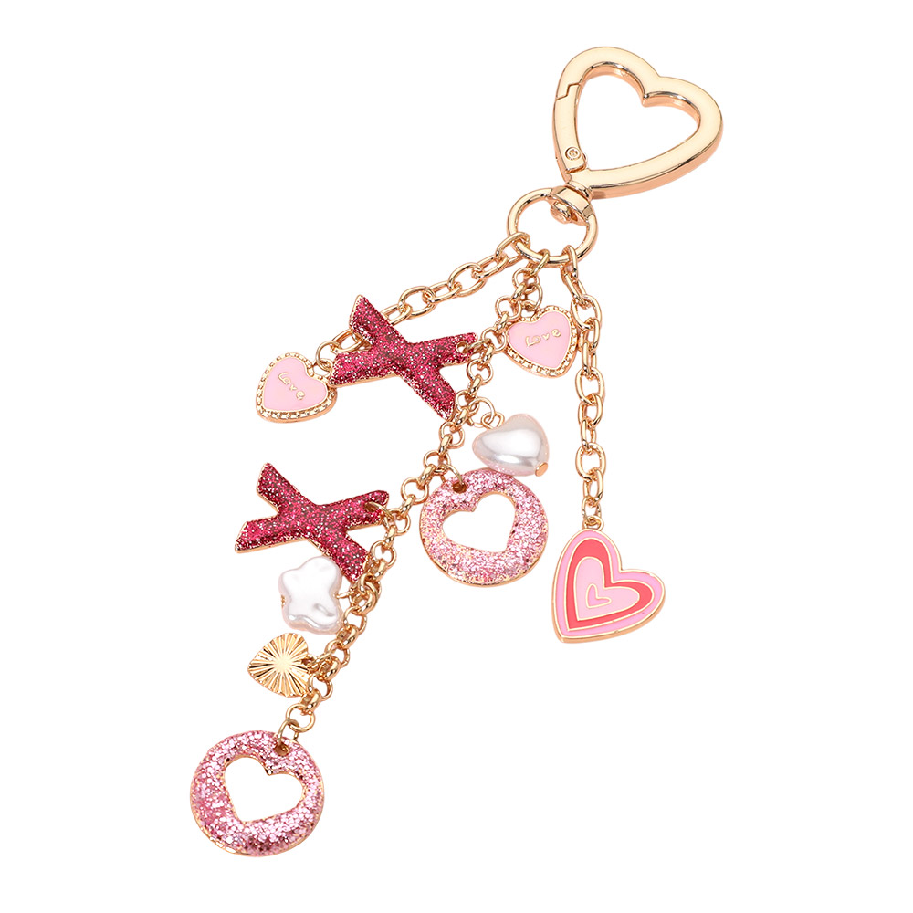 Details • Size : 1.5" X 6" • Playful XOXO charm keychain featuring sparkling letter accents and multiple dangling heart and star-inspired charms. Designed with a mix of glitter details and cute shapes, this fun accessory adds a cheerful touch to bags, keys, and everyday carry items. • Lead and Nickel Compliant
